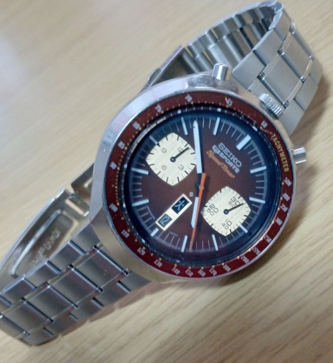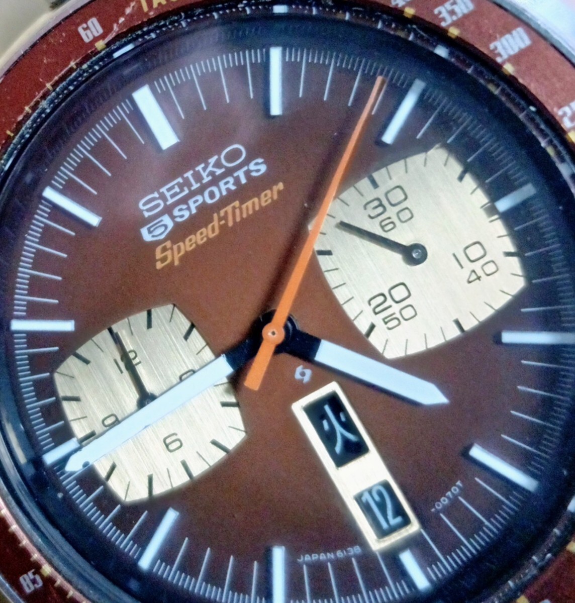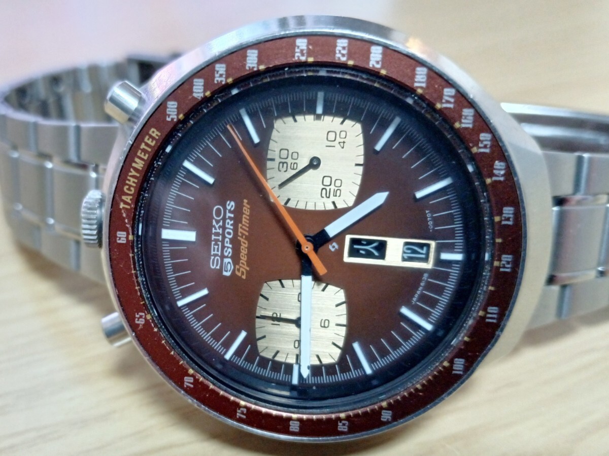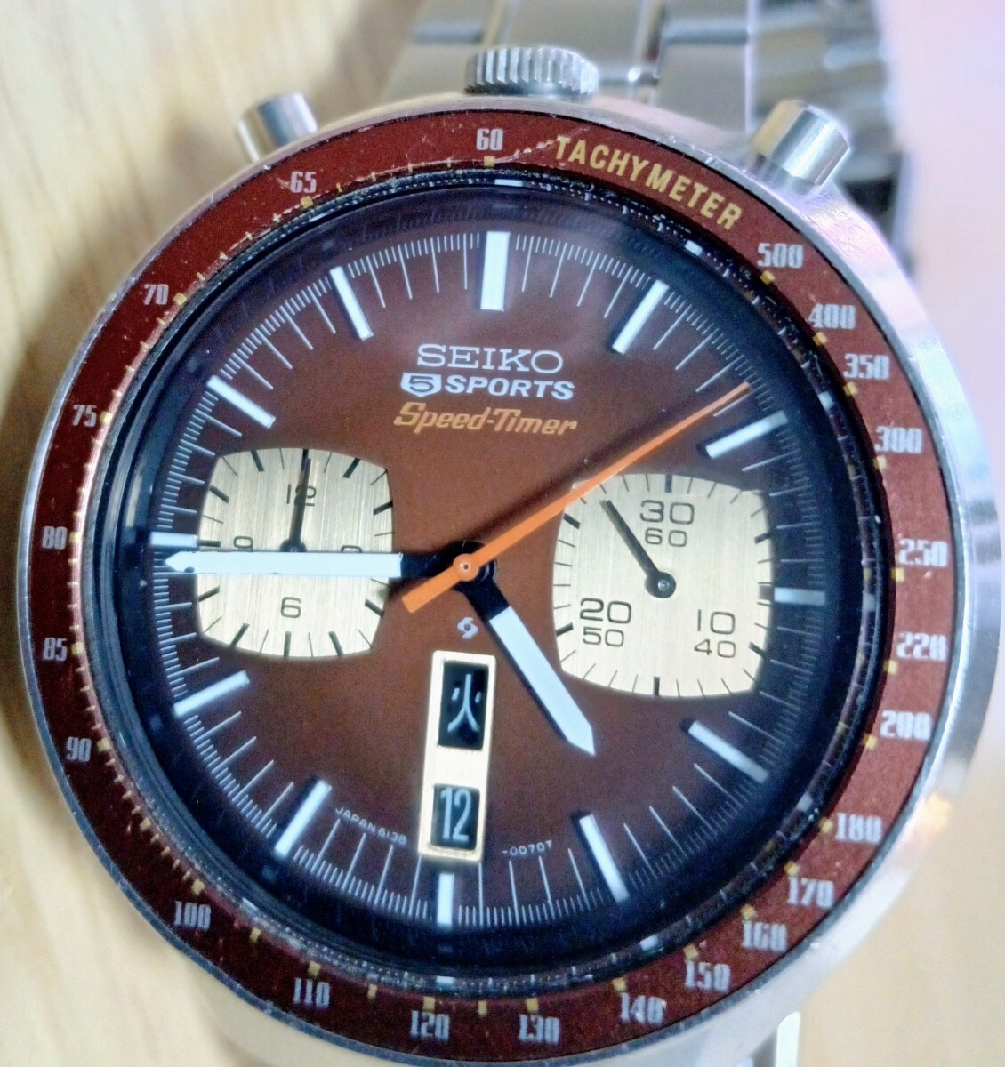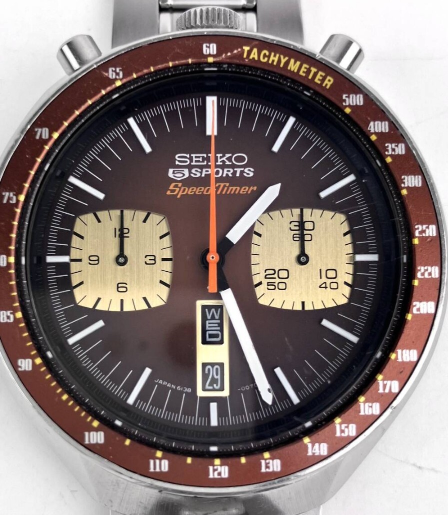 激レア★最初期モデル国内仕様 SEIKO5SPORTS三段ロゴSEIKO Speed-Timer Bullhead茶馬角クロノ 6138-0040★50時間パワーリザーブ