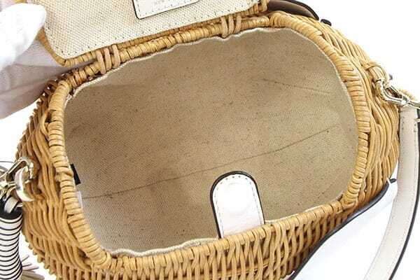 状態 | 外側:ラタン部分スレ、薄汚れあり。レザーにも所々薄スレ汚れあり。 内側:所々ボンド汚れあり。 金具:小キズ、スレあり。 |