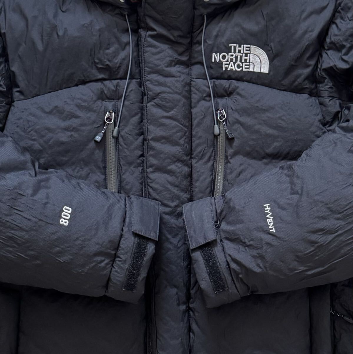 800フィルパワーのふんわりとしたダウンと、ノースフェイス独自の防水透湿素材HYVENTハイベントで、雨や雪からの水分の侵入を防ぎつつ、内側の湿気を外に逃がすことにより快適な状態が保たれます。ファスナーは上下開閉可能なダブル仕様で、YKKの中でも高品位なVISLONを採用。