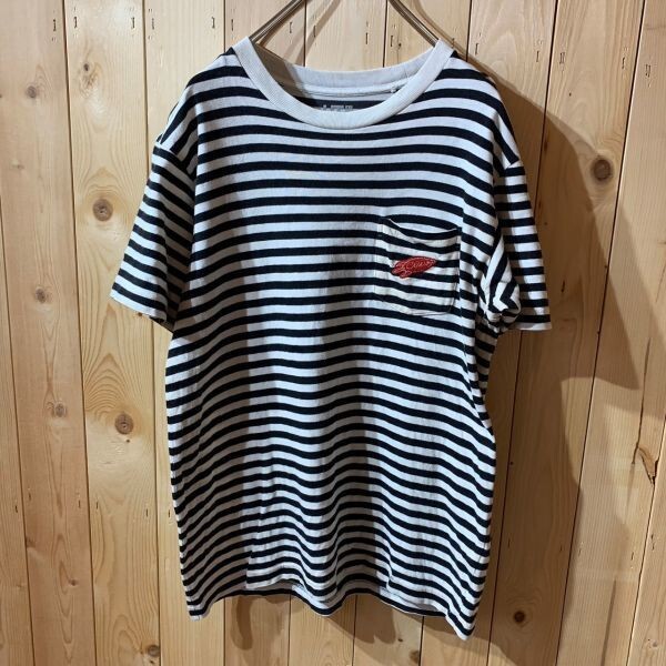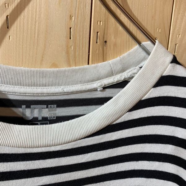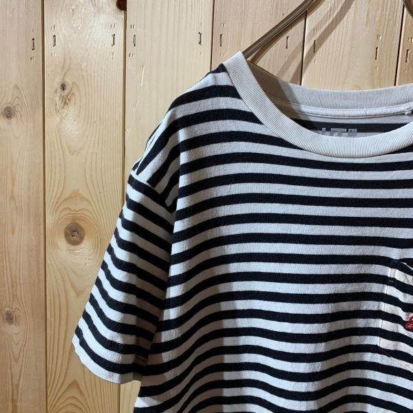 [KWT3574] UNIQLO ユニクロ 半袖Tシャツ メンズ ブラックボーダー S ポス