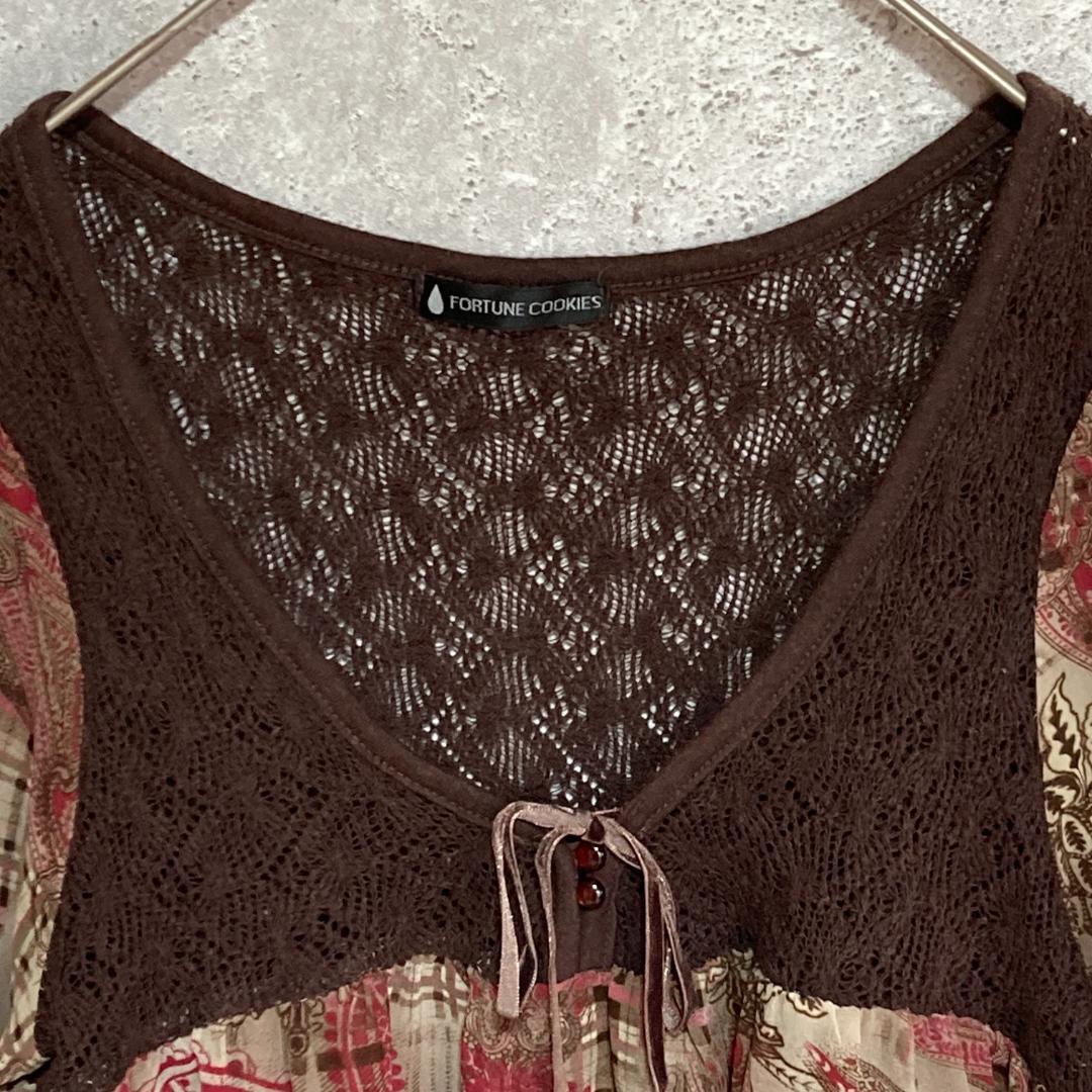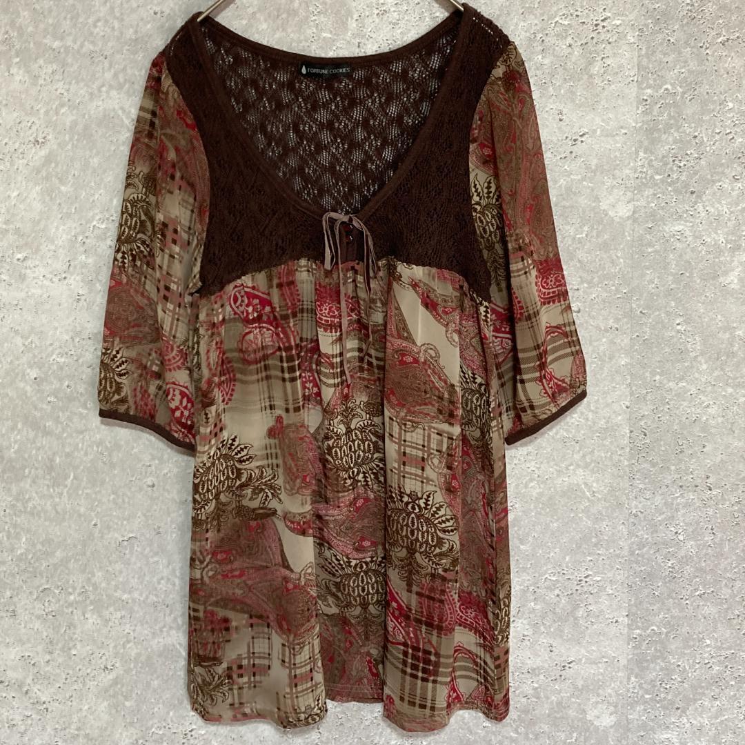 FORTUNE COOKIES(M)シアーチュニック*異素材*リボン*レース編み