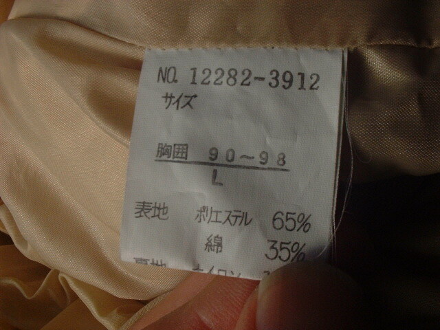 詳細不明。サイズ表示はL、胸囲90-98。ダウン、フェザー各50%。素人採寸で多少の誤差はありますが、丈約75センチです。中古品ですが、状態は悪くないと思います。ノークレームノーリターンでお願いします。発送はゆうパックのみ★オークションでのいたずら入札が増えているため、新規の方、評価が少ない方、悪いの評価が多い方等は、申し訳ありませんが当方の判断にて、落札者都合で削除されることがあります★商品は梱包状況によって送料が変わることがあります。その際は差額の請求もしませんが、返還も致しません。