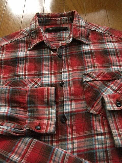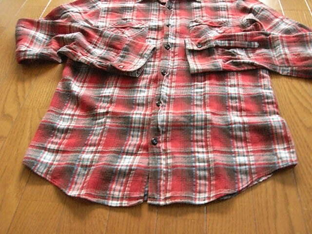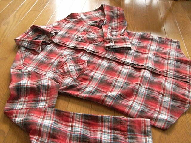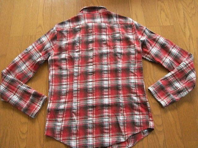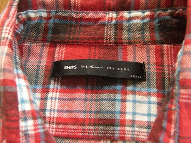 シップスの長袖ドレスシャツです。サイズはLになります。平置き実測サイズは、肩幅約44cm、袖丈約67cm、着丈約71cm、身幅約50cmです。素人採寸のため多少の誤差はご了承ください。全体色はレッド&ホワイト系のチェックのデザインになります。素材感もとても良く、シップスらしいとてもかっこいい素敵なデザインです。特に目立つダメージはありませんが、あくまでも中古でありますことを御了承願います。ノークレーム・ノーリターンでお願いします。送料込み(クロネコ便等発送)になります。