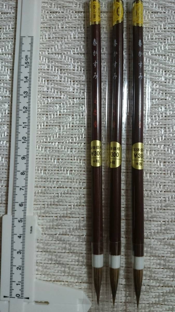 川尻筆 文志堂の「春かすみ」です、学童向けの名前書きに最適です。サイズ5x27㎜ 馬毛 定価300円+税 100円ショップや文具やの筆とは造りが違います。3本セットで出品していますが、最大9セットまでご購入できます。普通郵便ですと土日祝日の配達がないため到着まで非常に時間がかかるようになりました(発送から5~6日かかる場合もあるようです)、追跡調査もできませんし商品の保証もないのでお急ぎの方はレターパックを選択ください。