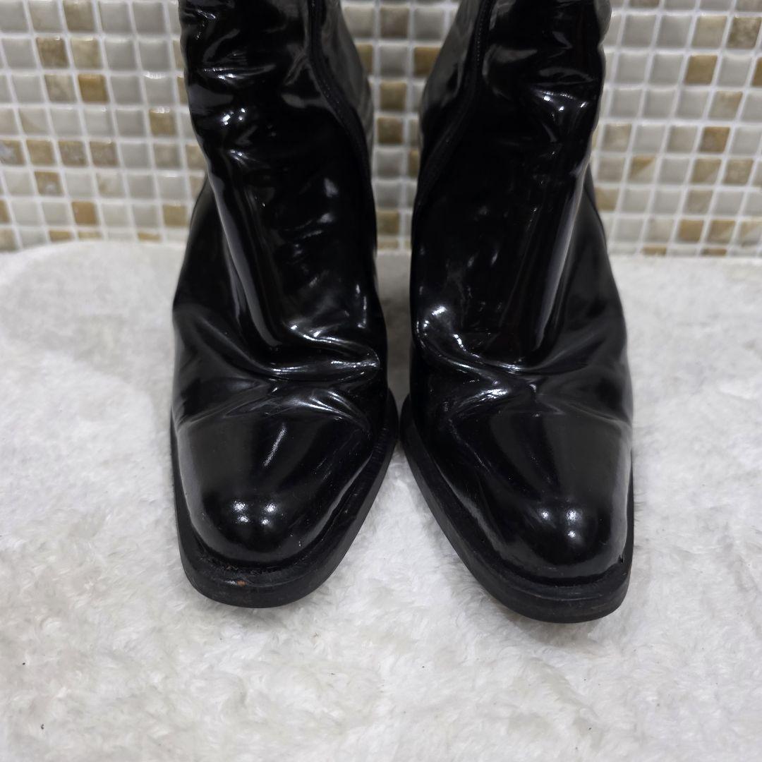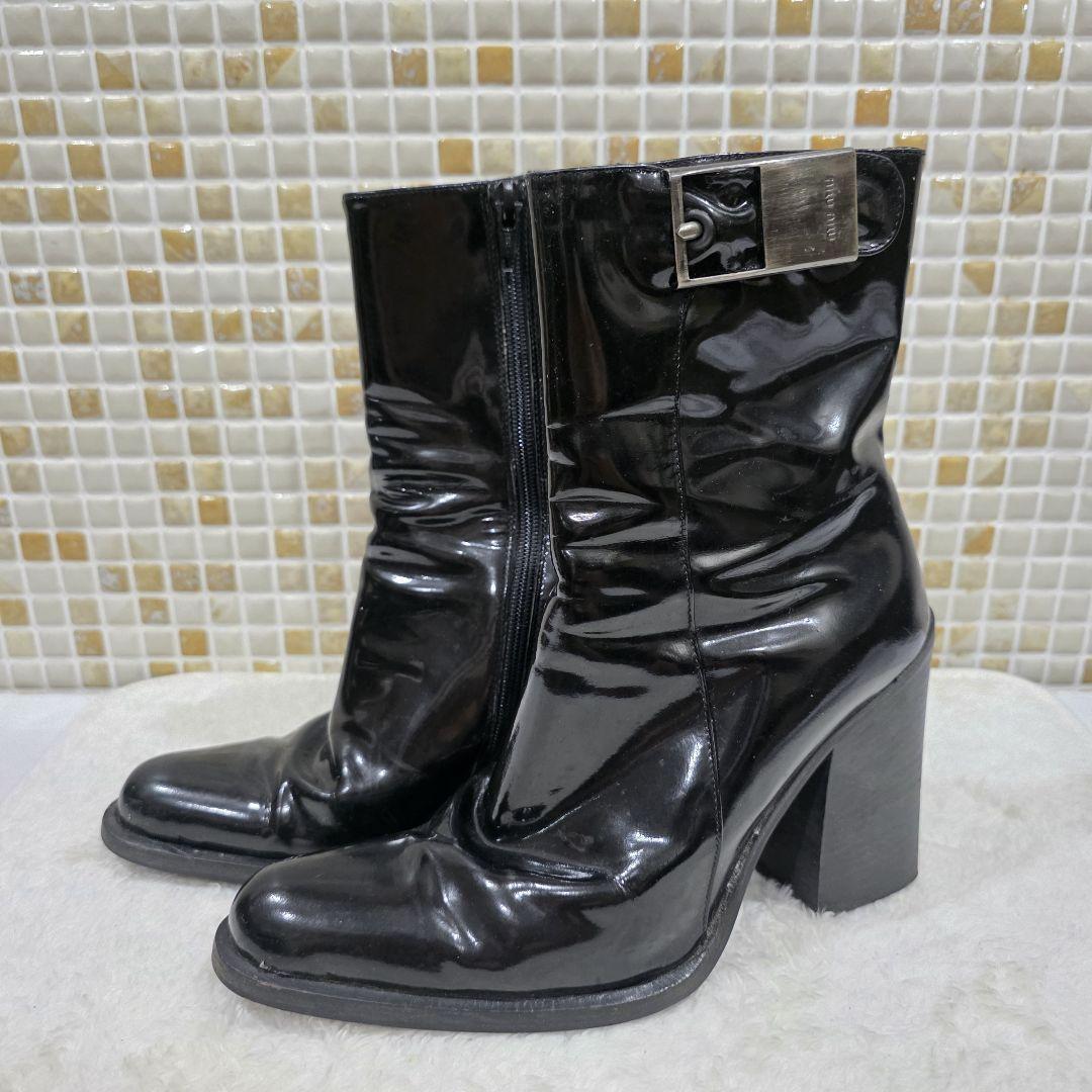 miumiu(ミュウミュウ)のエナメルショートブーツです。