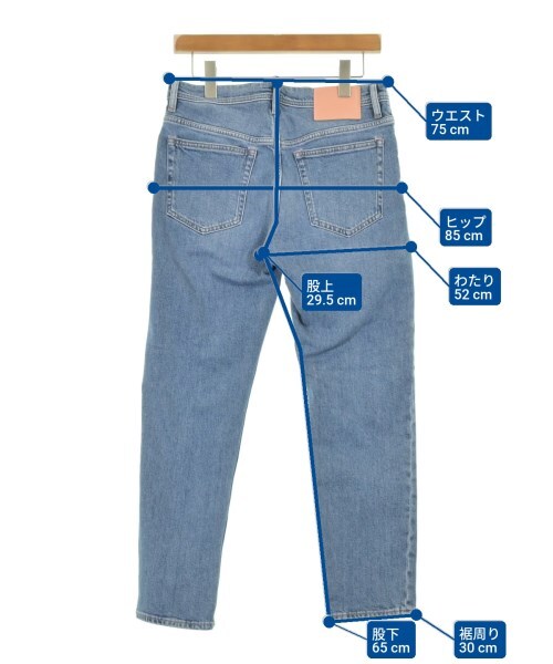 | ウエスト:75cm,裾周り:30cm,ヒップ:85cm,わたり:52cm,股上:29.5cm,股下:65cm |