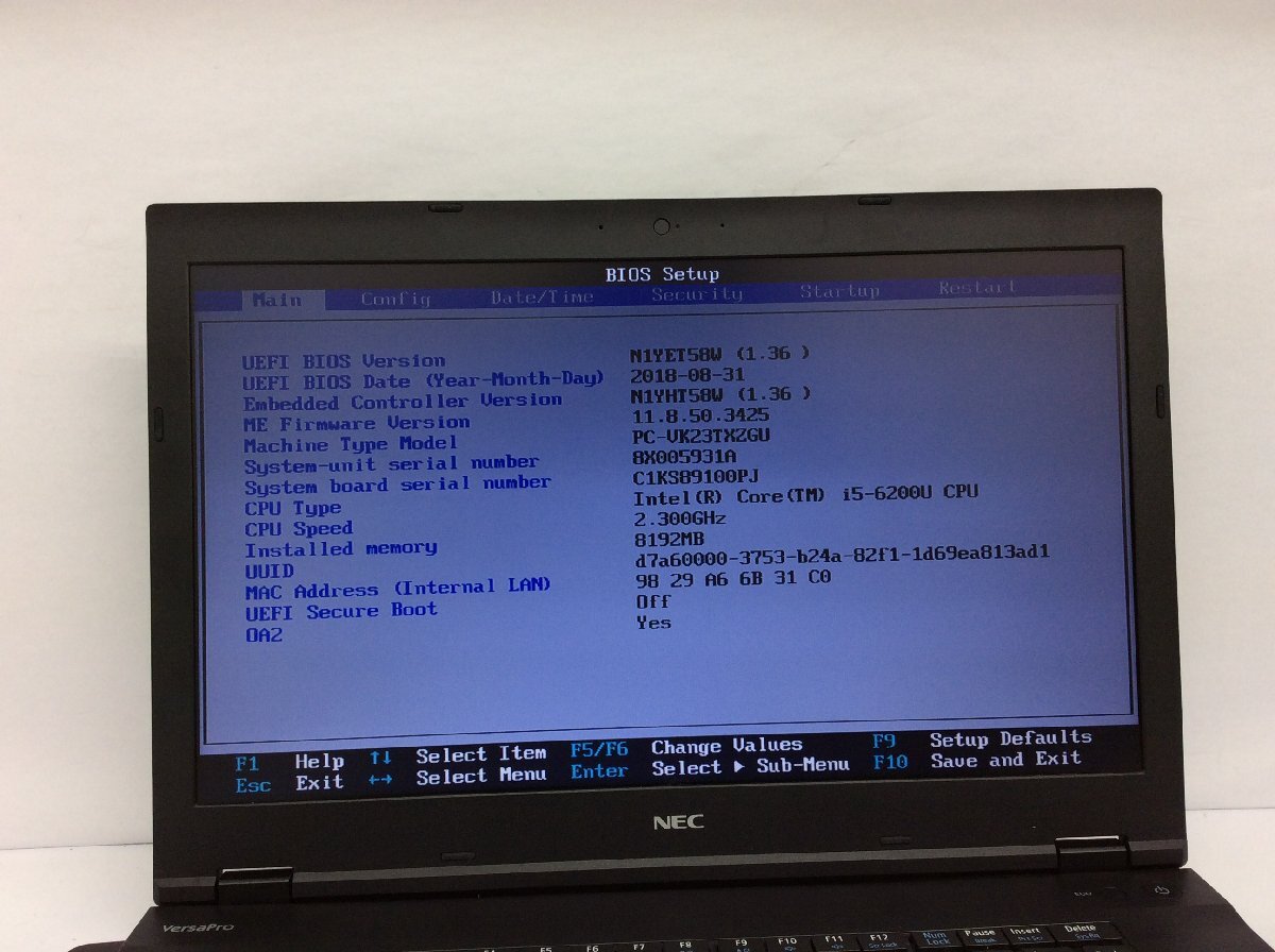 ジャンク/ NEC PC-VK23TXZGU Intel Core i5-6200U メモリ8.19GB ストレージ無し 【K20990】