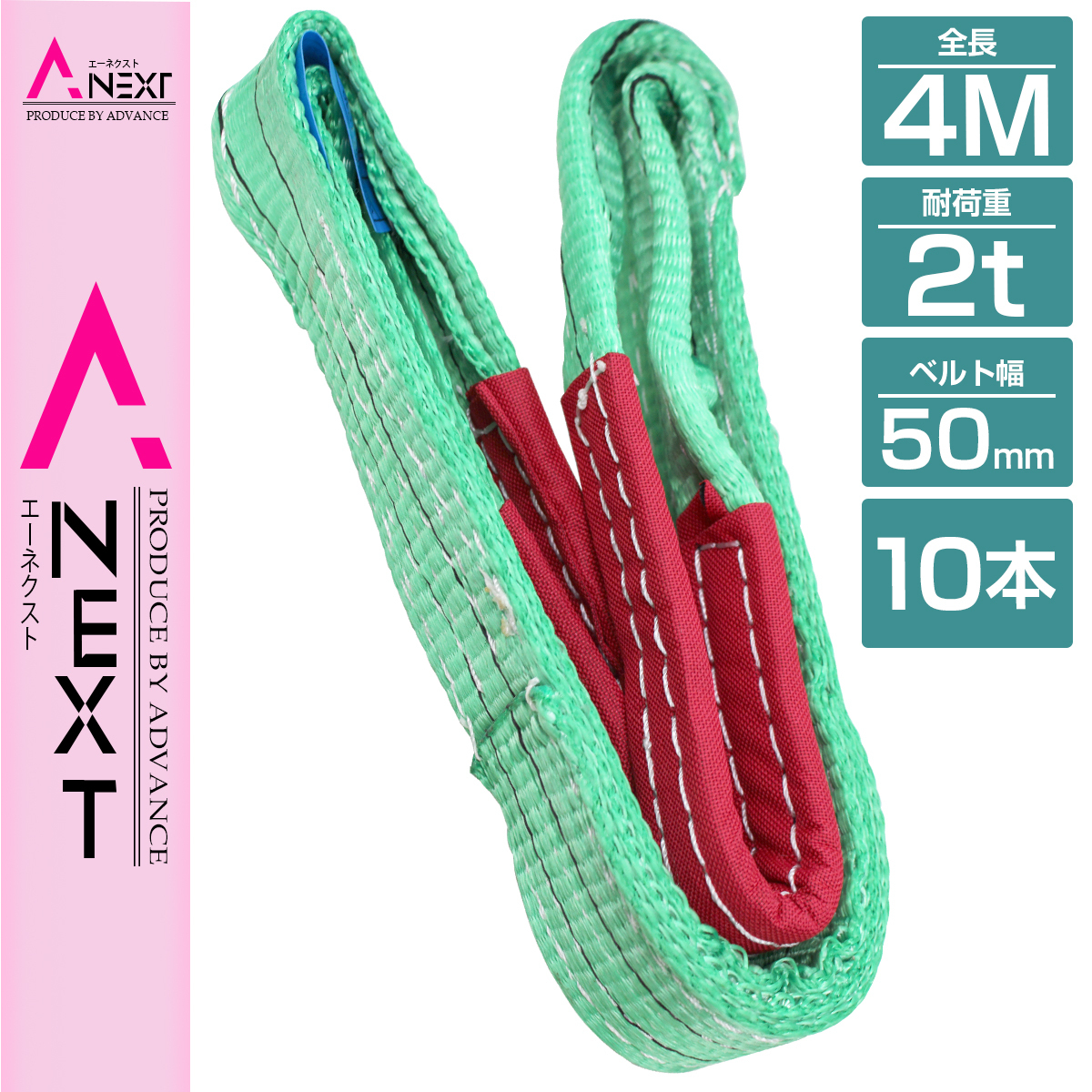 [10本 セット/耐荷2t/長さ4m] スリング ベルト 吊上げ ナイロン クレーン ロープ 荷吊り 玉掛け 牽引 運搬 2000kg 2トン 幅50mm