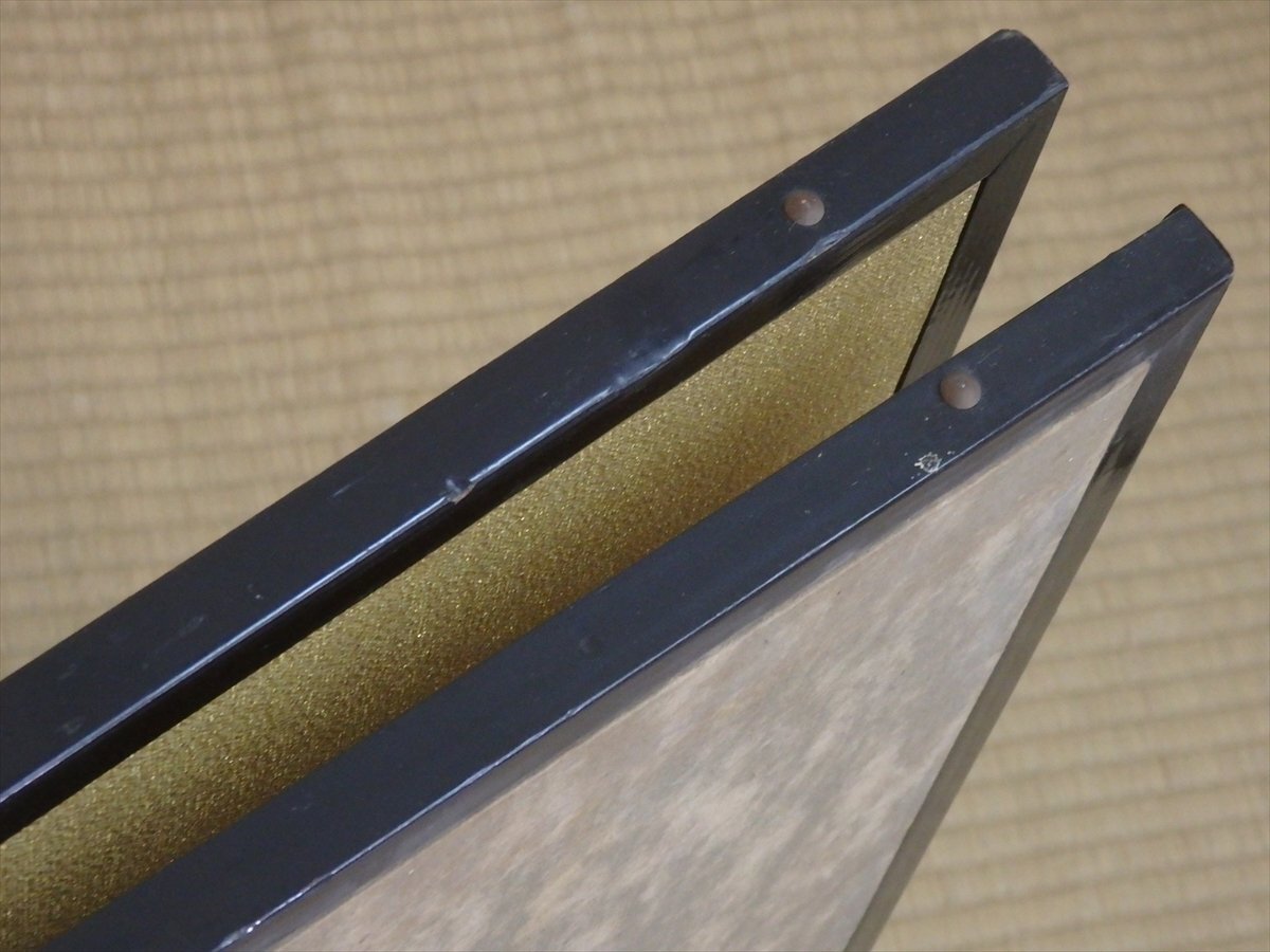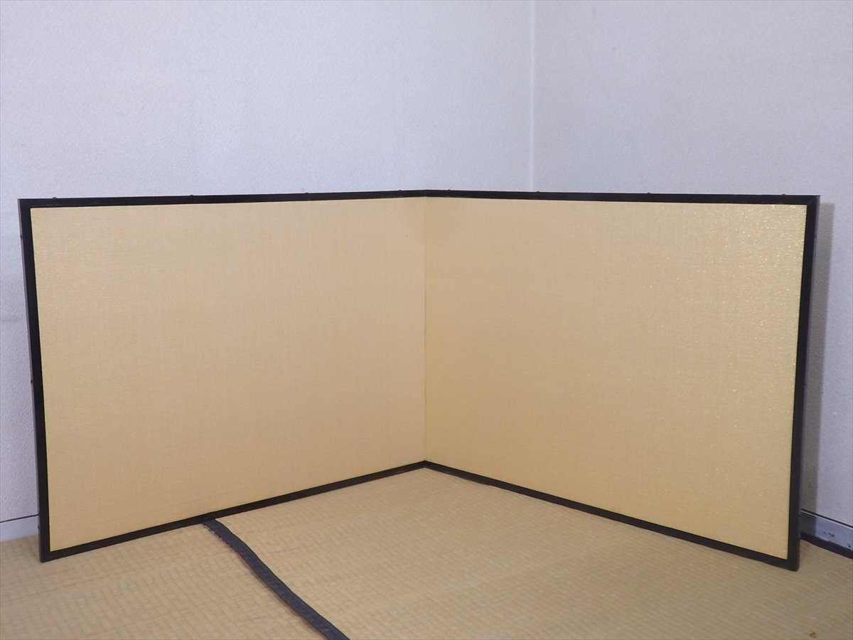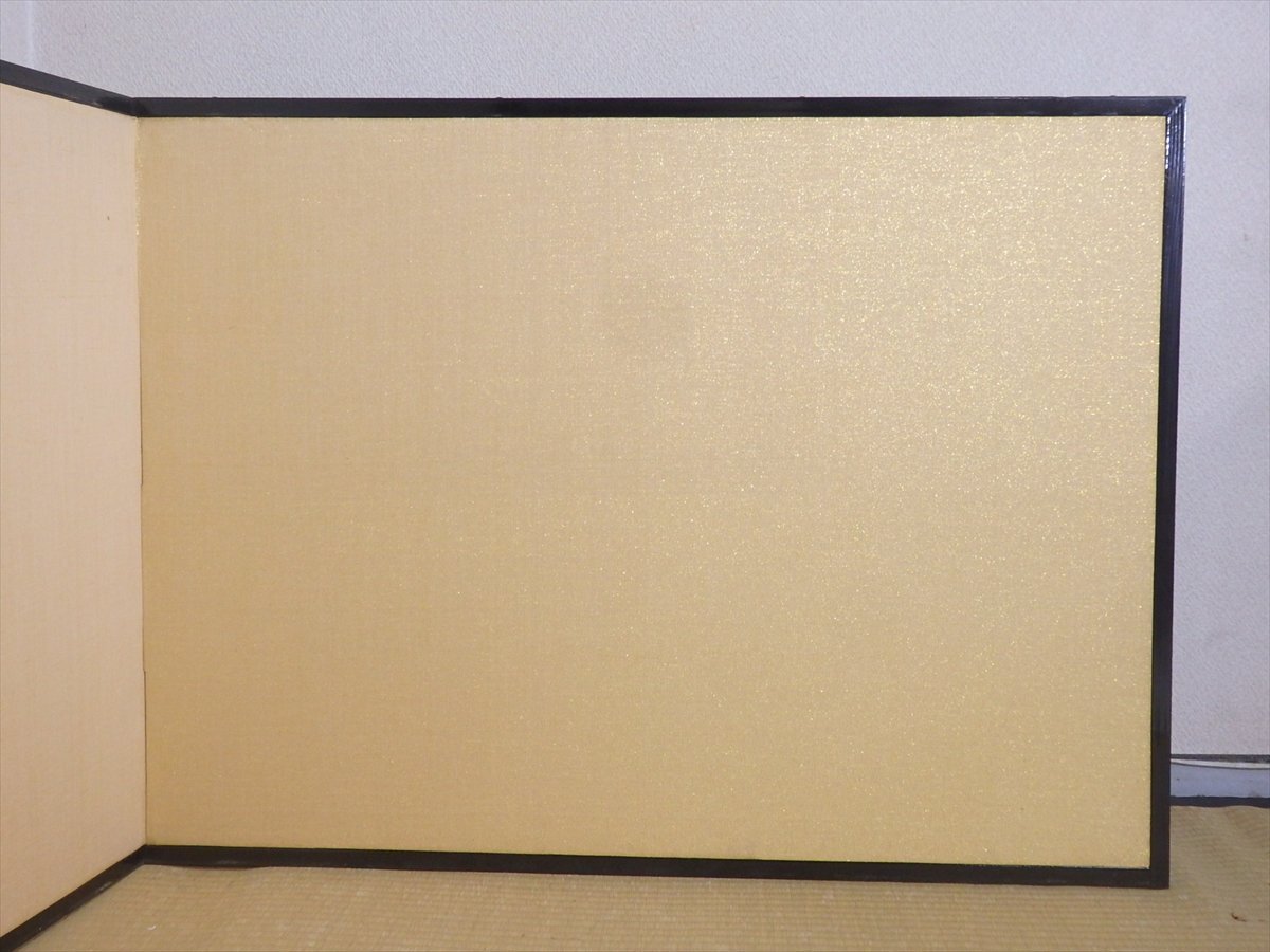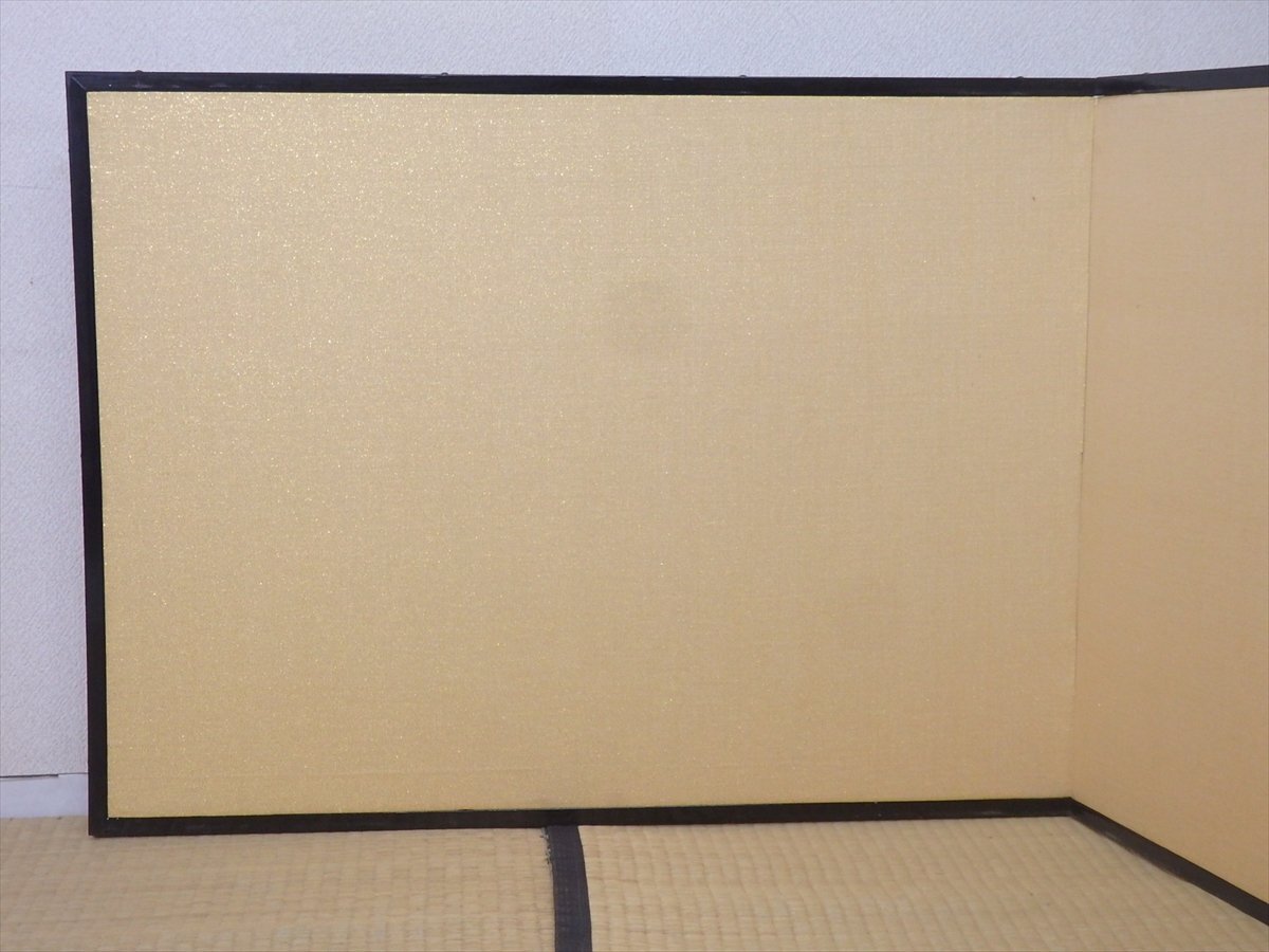 ★金の布地【金屏風 塗り縁 レトロ】幅88cmが2面(二つ折り) 高さ66.2cm 二曲屏風 茶道具 家具 茶器 セール!