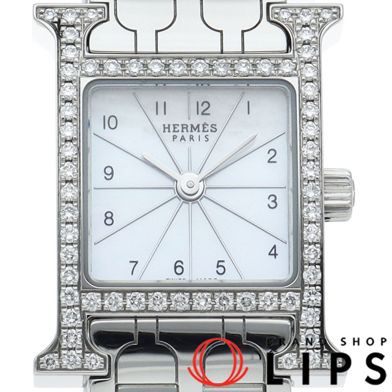 エルメス Hウォッチ ミニ ダイヤベゼル シェル HH1.130 箱 保証書 SS レディース時計 ホワイトシェル 仕上げ済 美