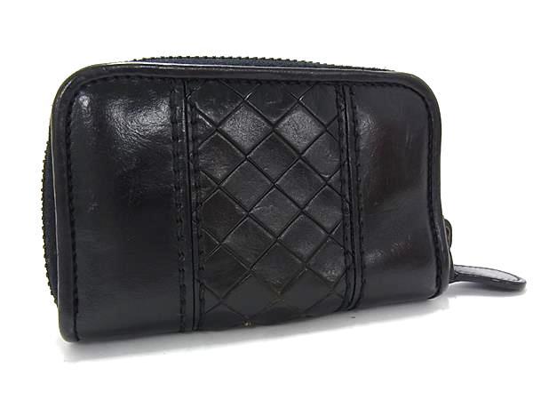 1円 ■美品■ BOTTEGA VENETA ボッテガヴェネタ イントレチャート レザー コインケース コインパース 小銭入れ メンズ ブラック系 FU1060