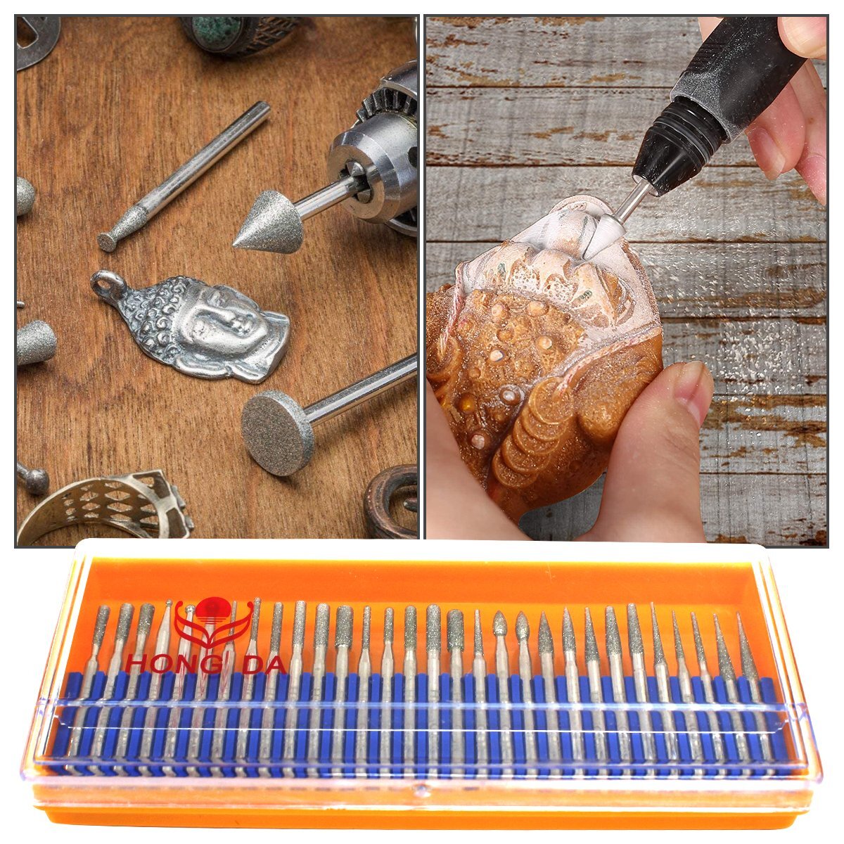 【送料無料】ダイヤモンドビット 30本セット 軸径3mm 電着 ダイヤモンド ミニルーター ミニグラインダー リュータービット 砥石 研磨 #150