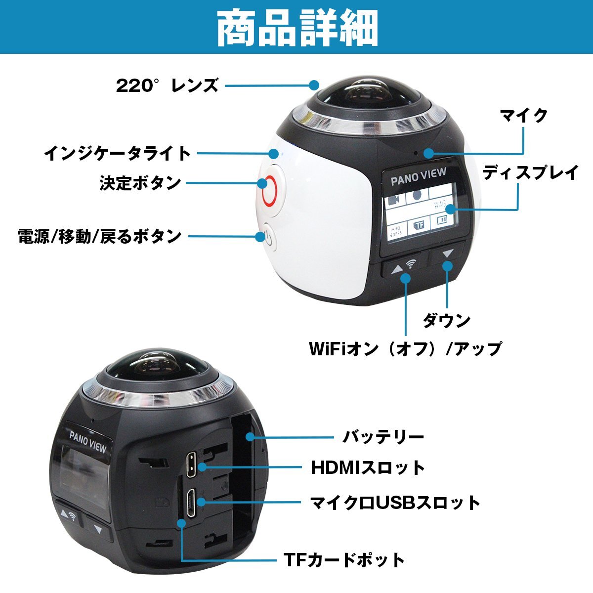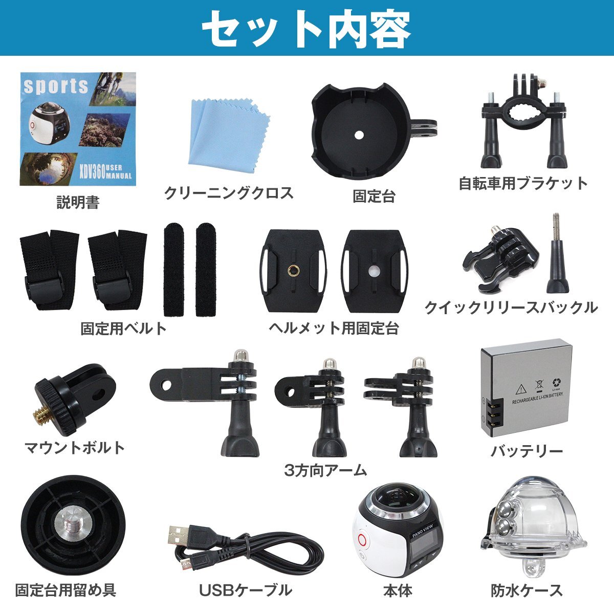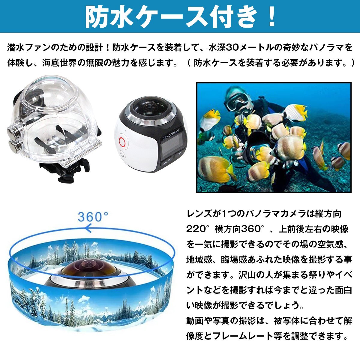 フルHD 360度カメラ 防水 小型 水中 30m アクションカメラ スポーツカメラ 空撮対応 Wi-Fi