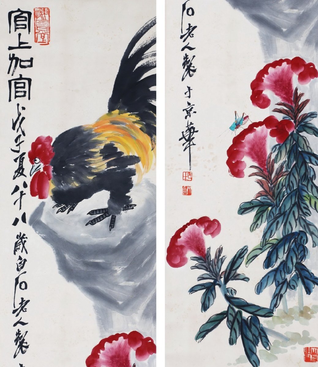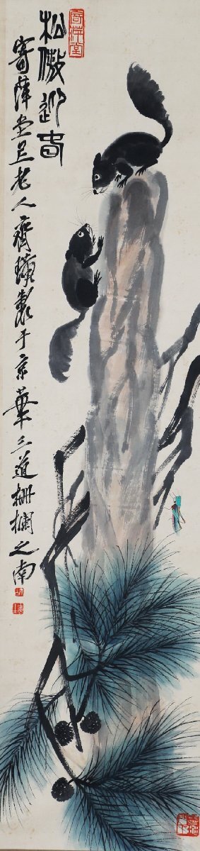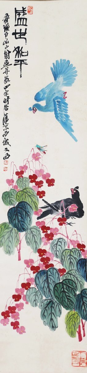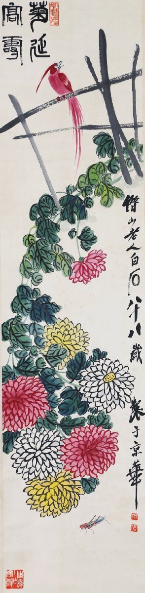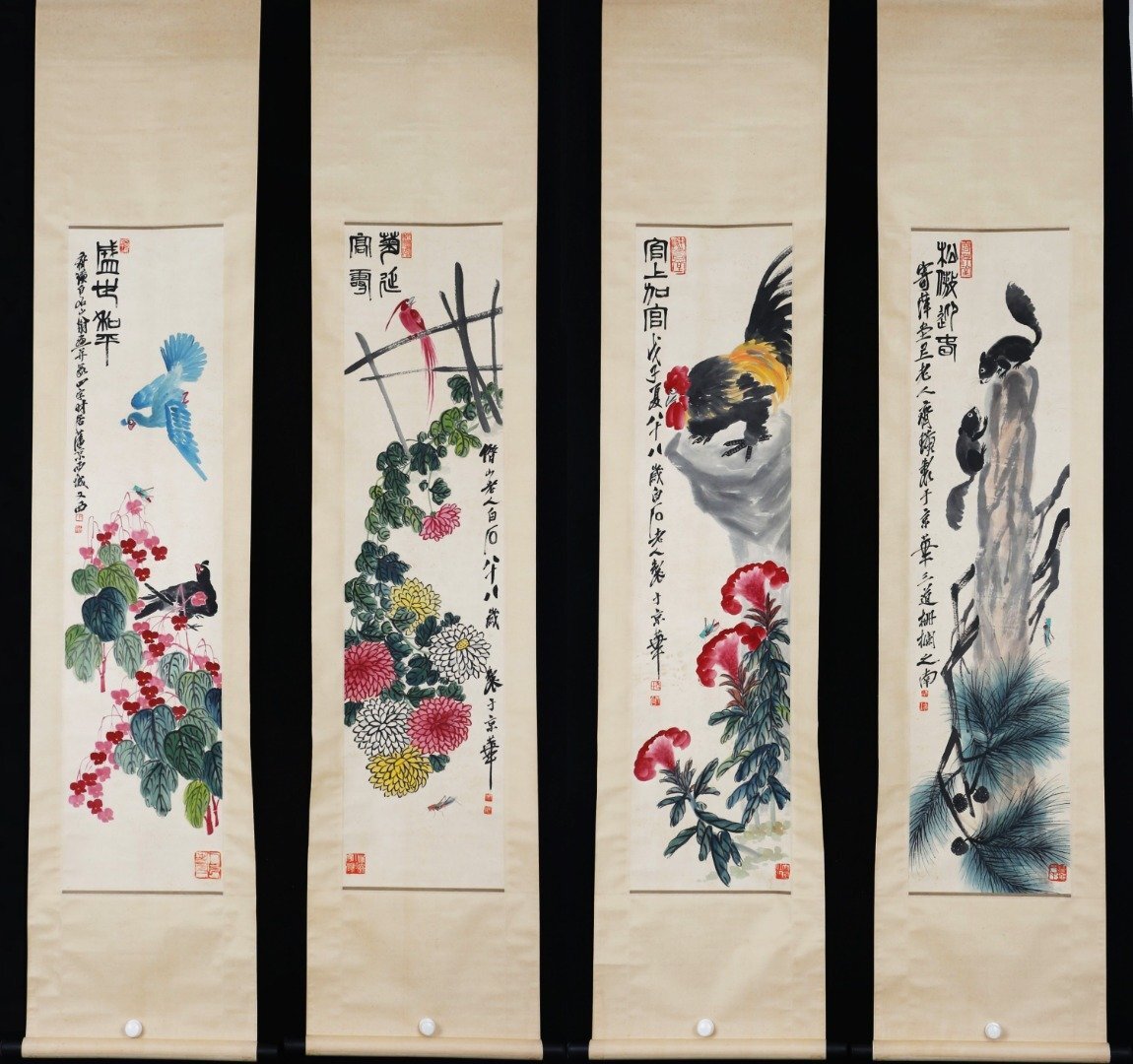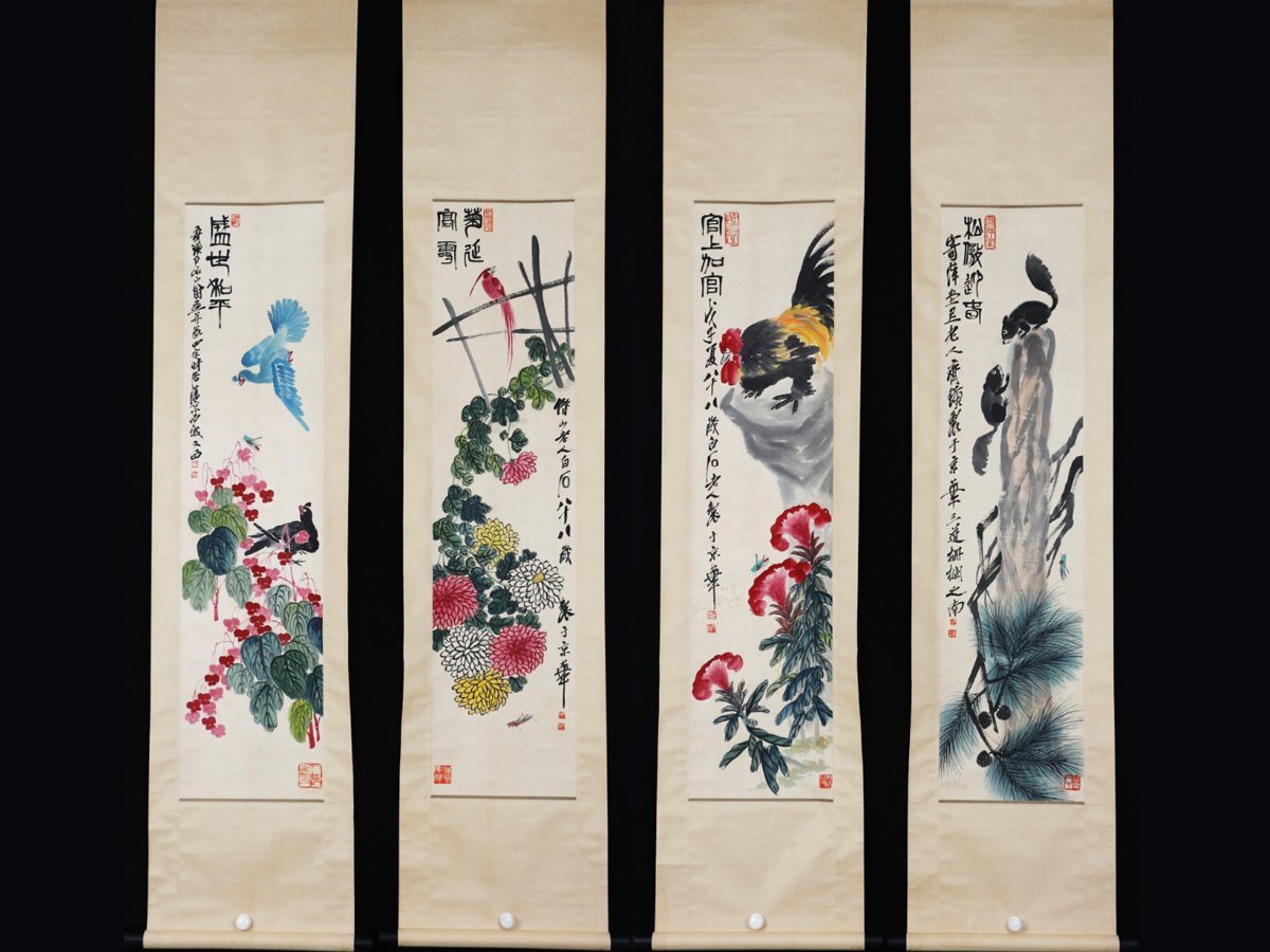 【安】中国近時代画家「斉白石書」紙本「花卉禽鳥図四条屏」掛軸 中国画 墨寶妙品 中国書道 古美術 303 サイズ(約寸) |