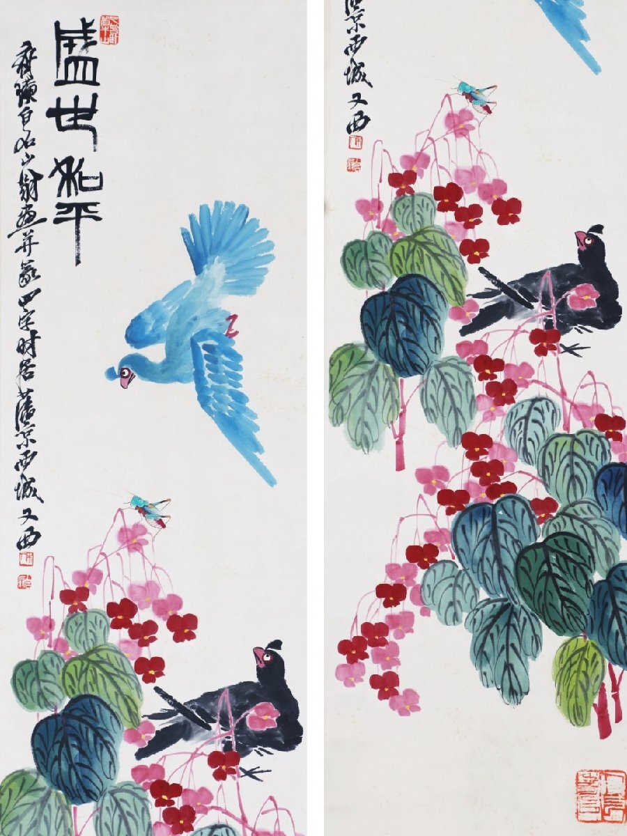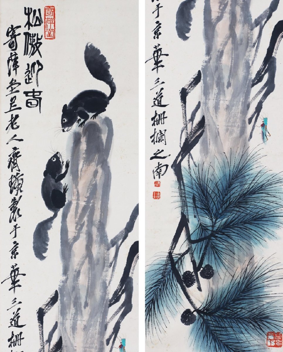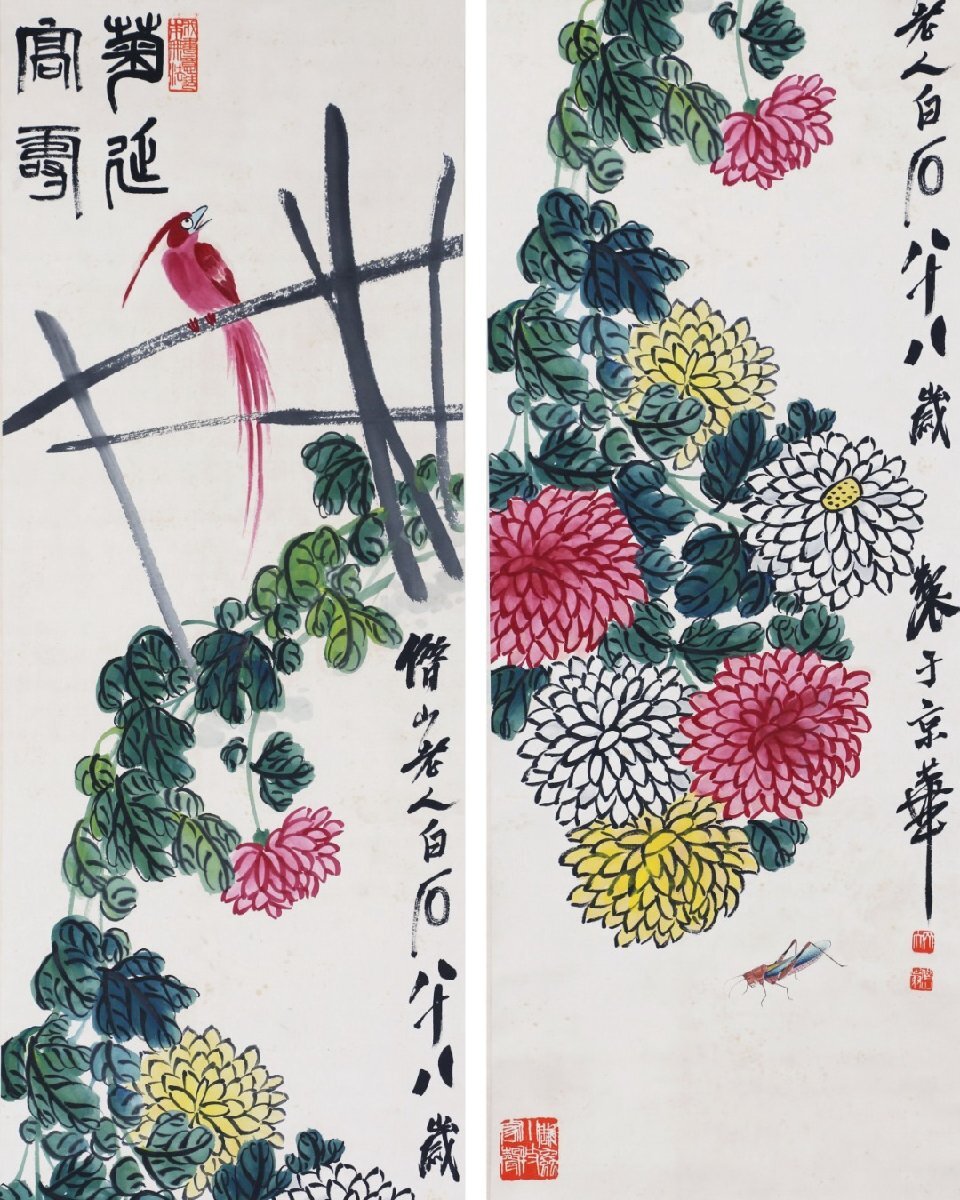 【安】中国近時代画家「斉白石書」紙本「花卉禽鳥図四条屏」掛軸 中国画 墨寶妙品 中国書道 古美術 303 サイズ(約寸) |