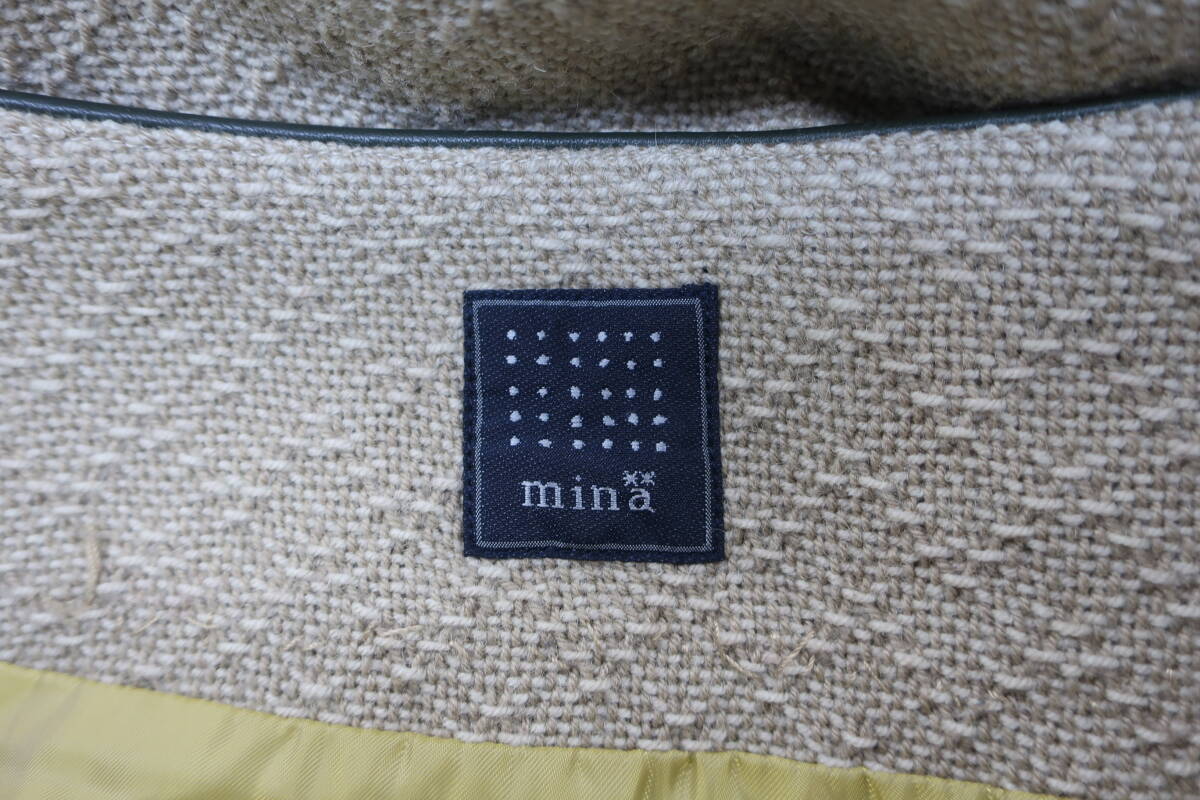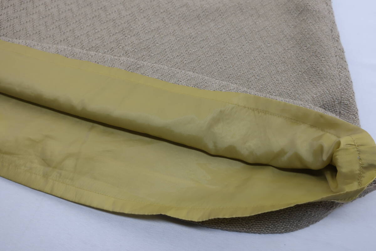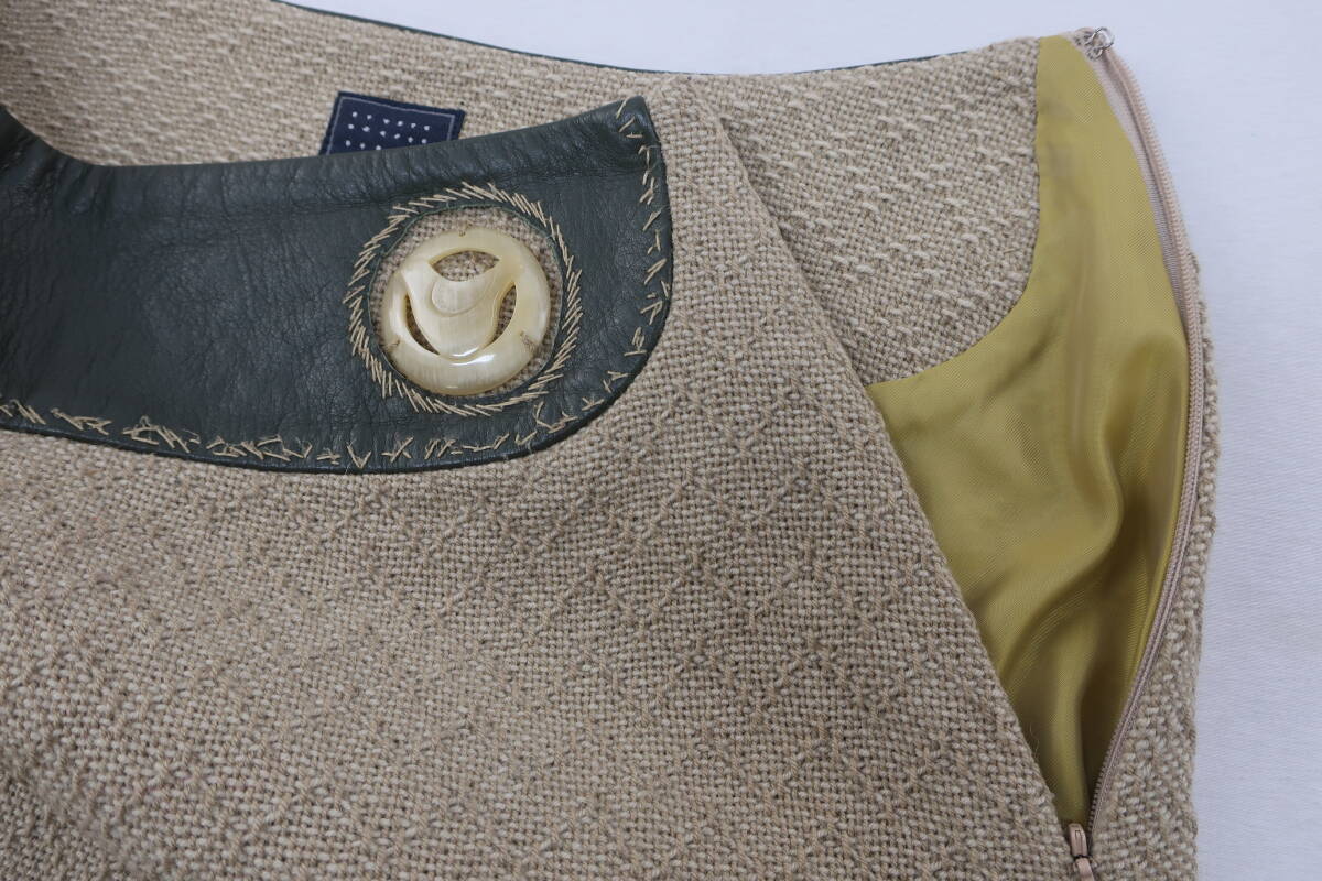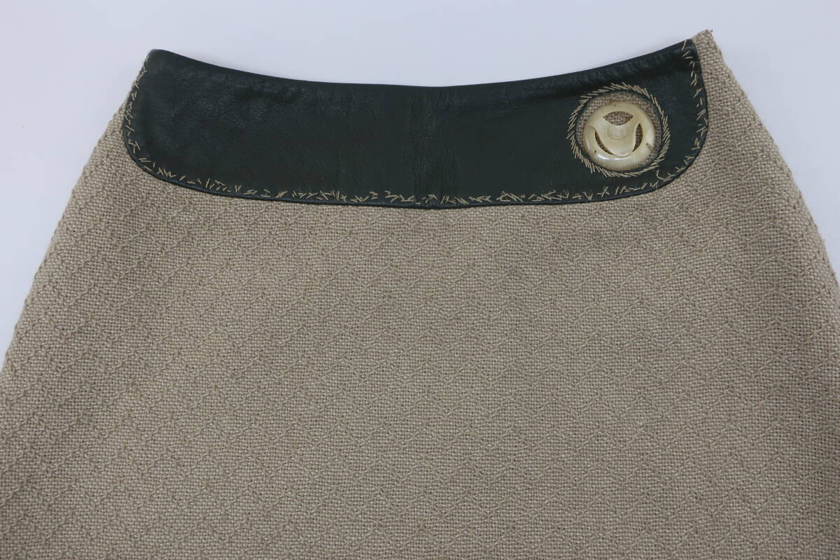 【送900円】1113 mina ミナ cloudy 台形スカート 膝丈 毛×ナイロン レザー 牛革 カーキ×ベージュ Aライン サイドジップ
