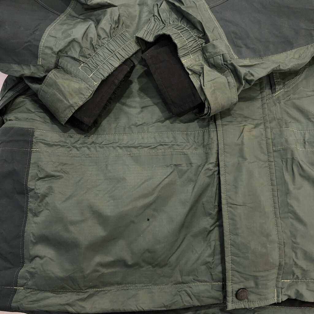 | 【商品管理番号】 T2765 【ブランド】 Columbia/コロンビア 【サイズ】 L 【実寸サイズ】 着丈:約77cm 身幅:約74cm 裄丈:約91cm 袖下丈:約63cm 【主な素材】 表地 : ナイロン 裏地 : 13897 【色】 グレーグレー 【仕様】 90年代 TITANIUM 裾ドローコード、ベンチレーション、ベルクロストラップ、裏地メッシュ OMNI-TECH 【状態】 汚れ:首元、袖、腹部、背中裏地 キズ:腹部 特記事項:フード欠損 【付属品】 フリースライナー付き | |||