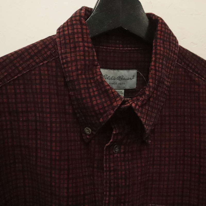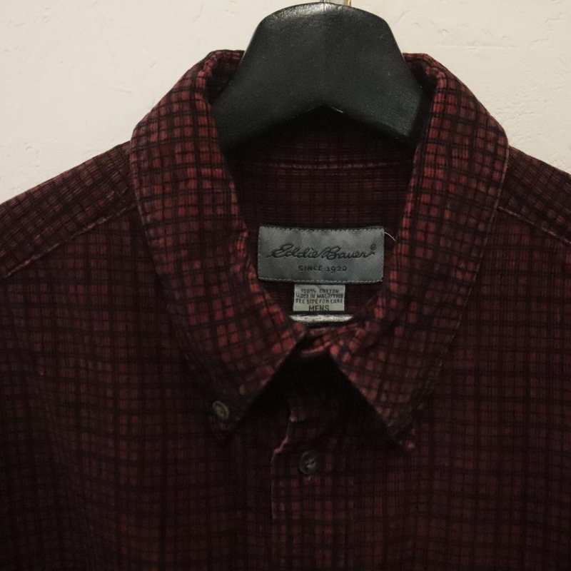 商品名 r355 2000年代製 エディーバウアー 長袖コーデュロイシャツ■00s 表記Lサイズ ボルドー ボタンダウン チェック アメカジ ストリート 古着