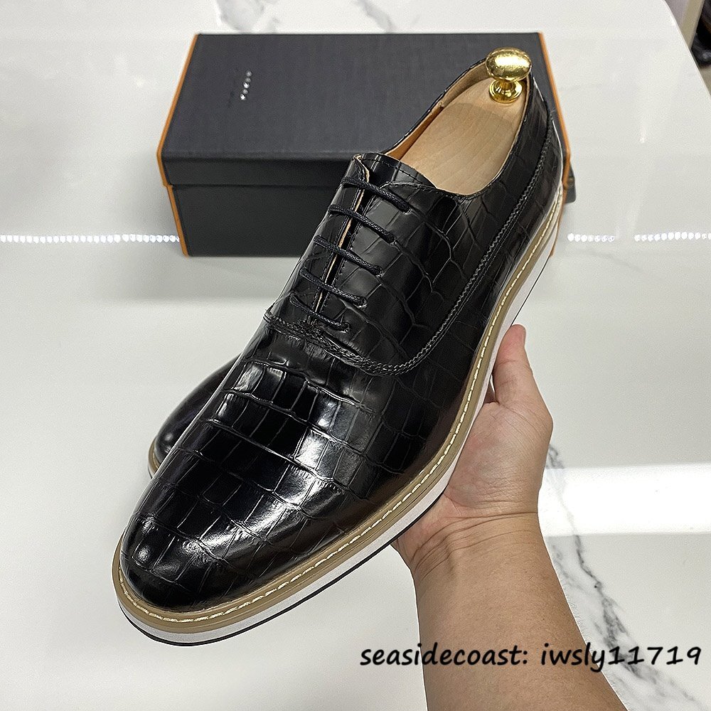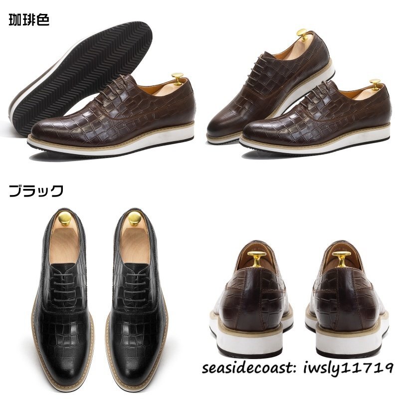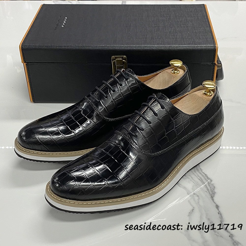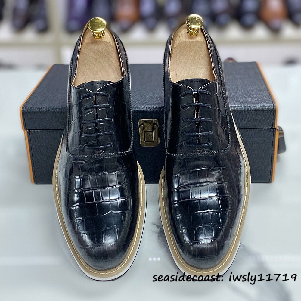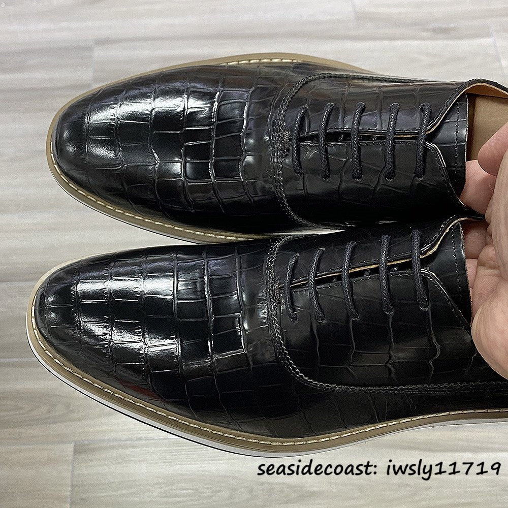 定価9万☆本革レザーシューズ メンズ スニーカー 鰐柄 職人手作り ビジネスシューズ 紳士靴 厚底 革靴 牛革 通勤 超軽量 ブラック 25.0cm