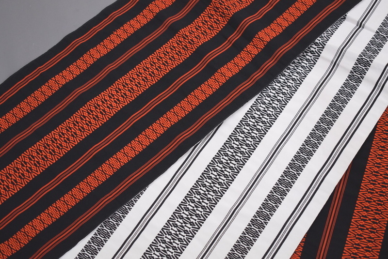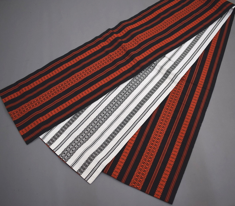 A61-6【凛々】即決 中古品 ポリエステル 踊り用 舞台用 袋帯 黒 赤 / 白 黒 献上柄