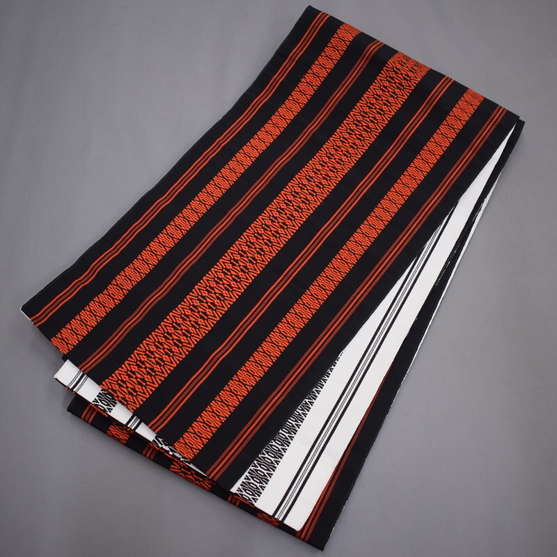商品名   A61-6【凛々】即決 中古品 ポリエステル 踊り用 舞台用 袋帯 黒 赤 / 白 黒 献上柄