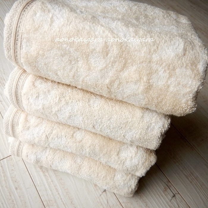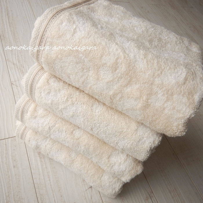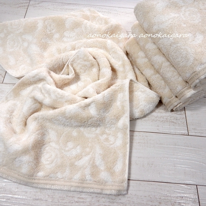 新品●今治産●5280円●ふわふわ●上質●無撚糸&甘撚り糸●薔薇●ローズ●フェイスタオル4枚●ベージュ系