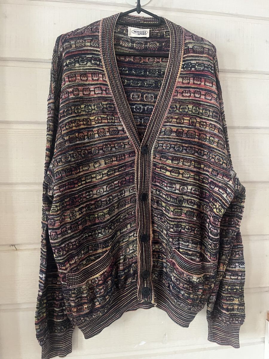 ミッソーニスポーツになります。サイズは50。コットン50、ビスコース50。数回着用、目立つ汚れは見当たりません。