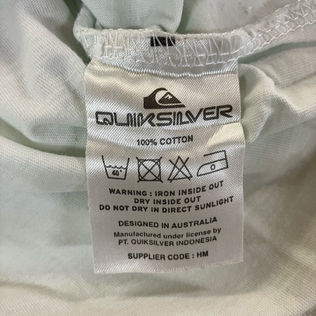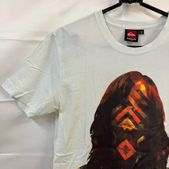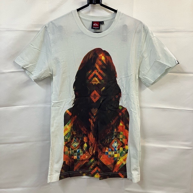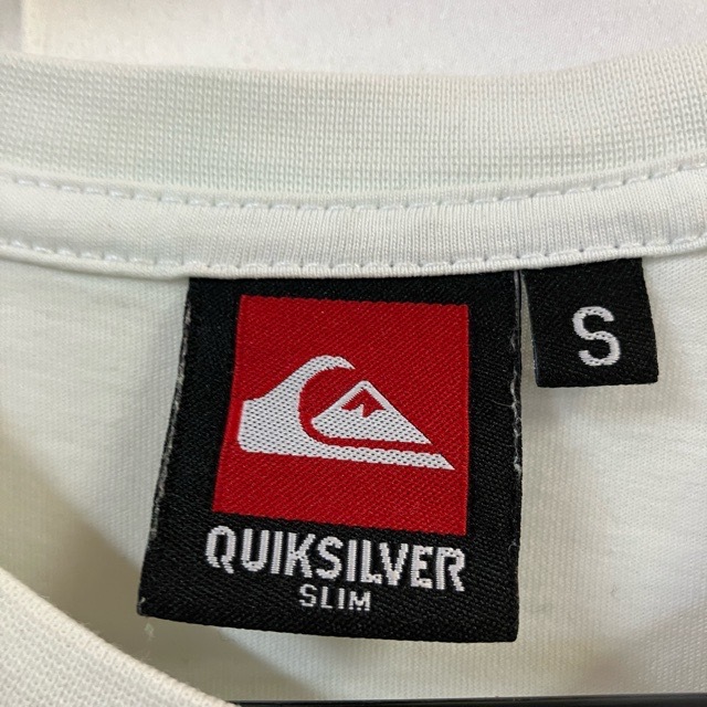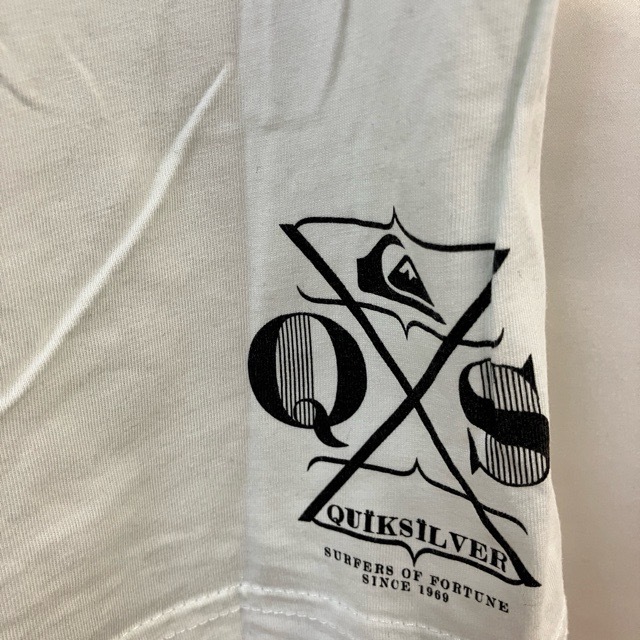 A39 クイックシルバー S アメリカ古着 コットン プリント 半袖Tシャツ ホワイト Quiksilver メンズ