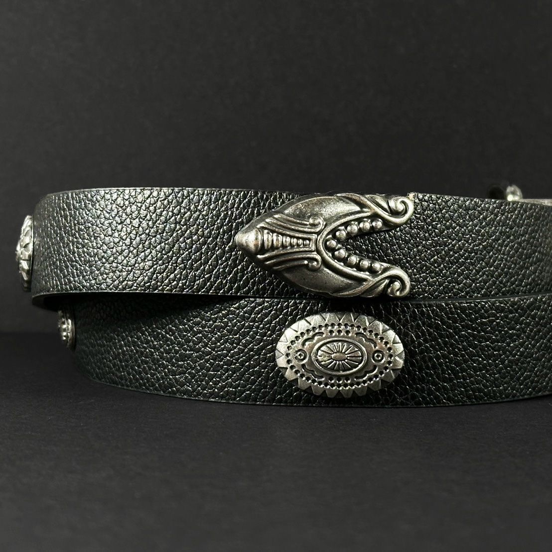 細めのシルエットながら、コンチョの装飾がアクセントとなり、ウエスタンやアメカジスタイルにぴったりの一本(*^^)v