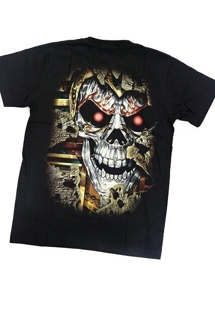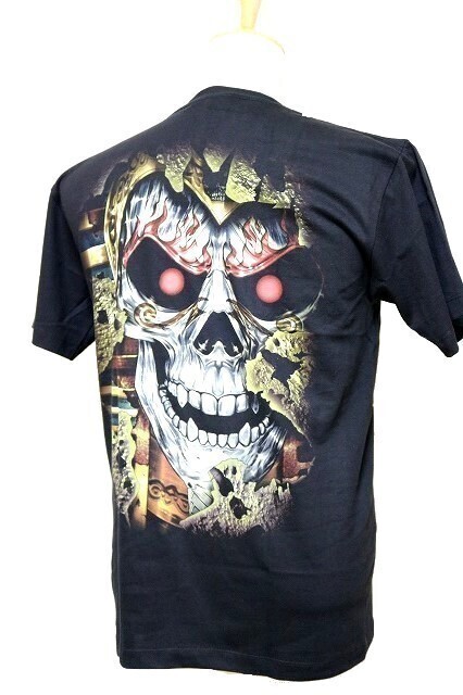 【新品】ドクロ ツタンカーメン 3D Tシャツ 半袖【S】黒◆骸骨 SKULL Tutankhamun ヘビメタ ロック ヒップホップ DJ 男性 女性
