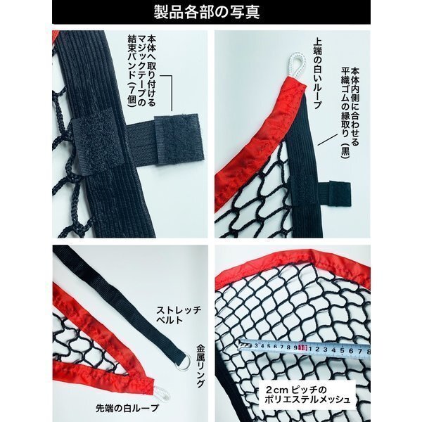 ●取付部:白ループ3箇所、結束バンド7箇所、ストレッチベルト1本