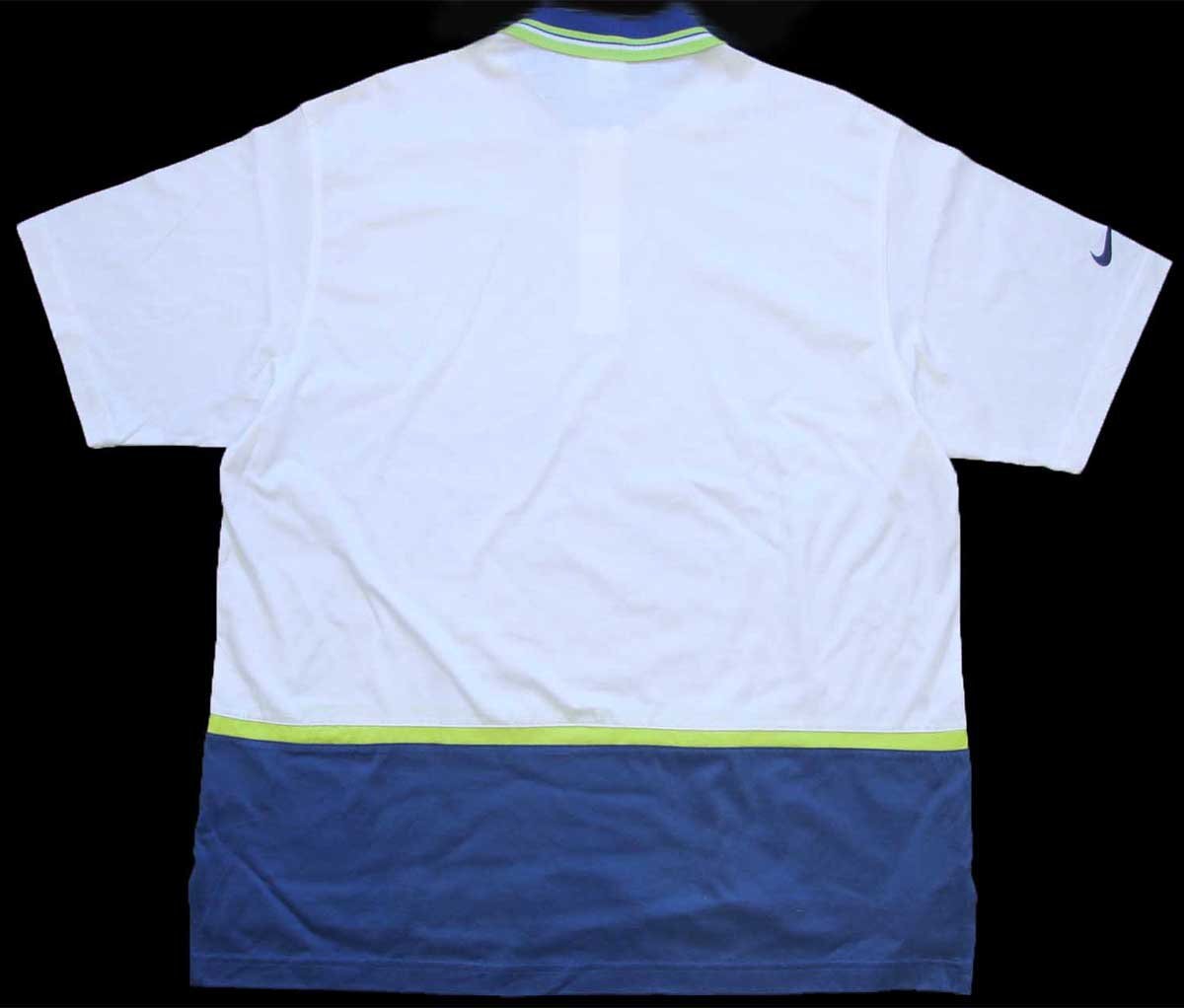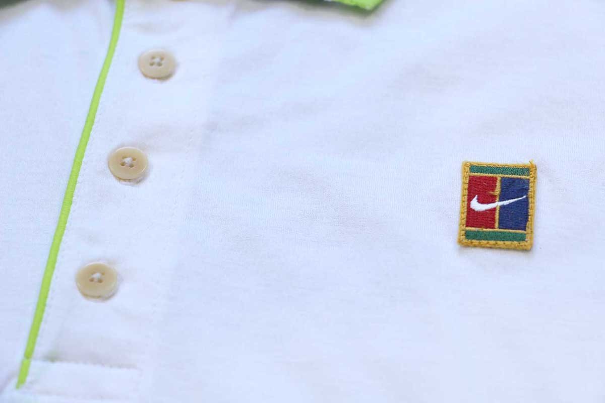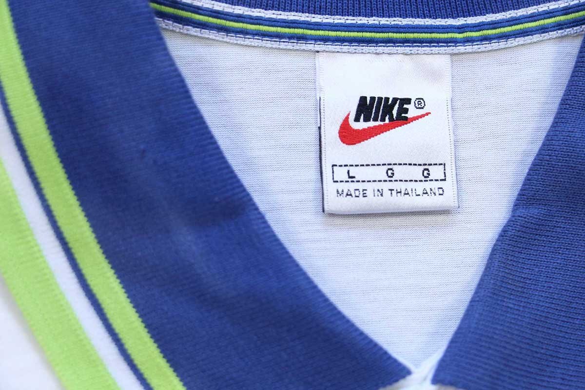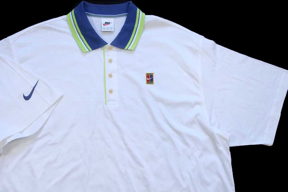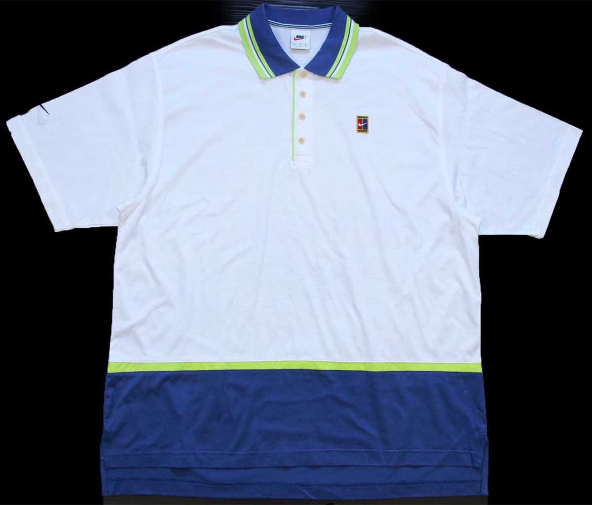 ★90s NIKEナイキ テニス パッチ&刺繍入り 蛍光 マルチカラー 切り替え コットン ポロシャツ L★ビンテージ スウッシュ ネオン スポーツ