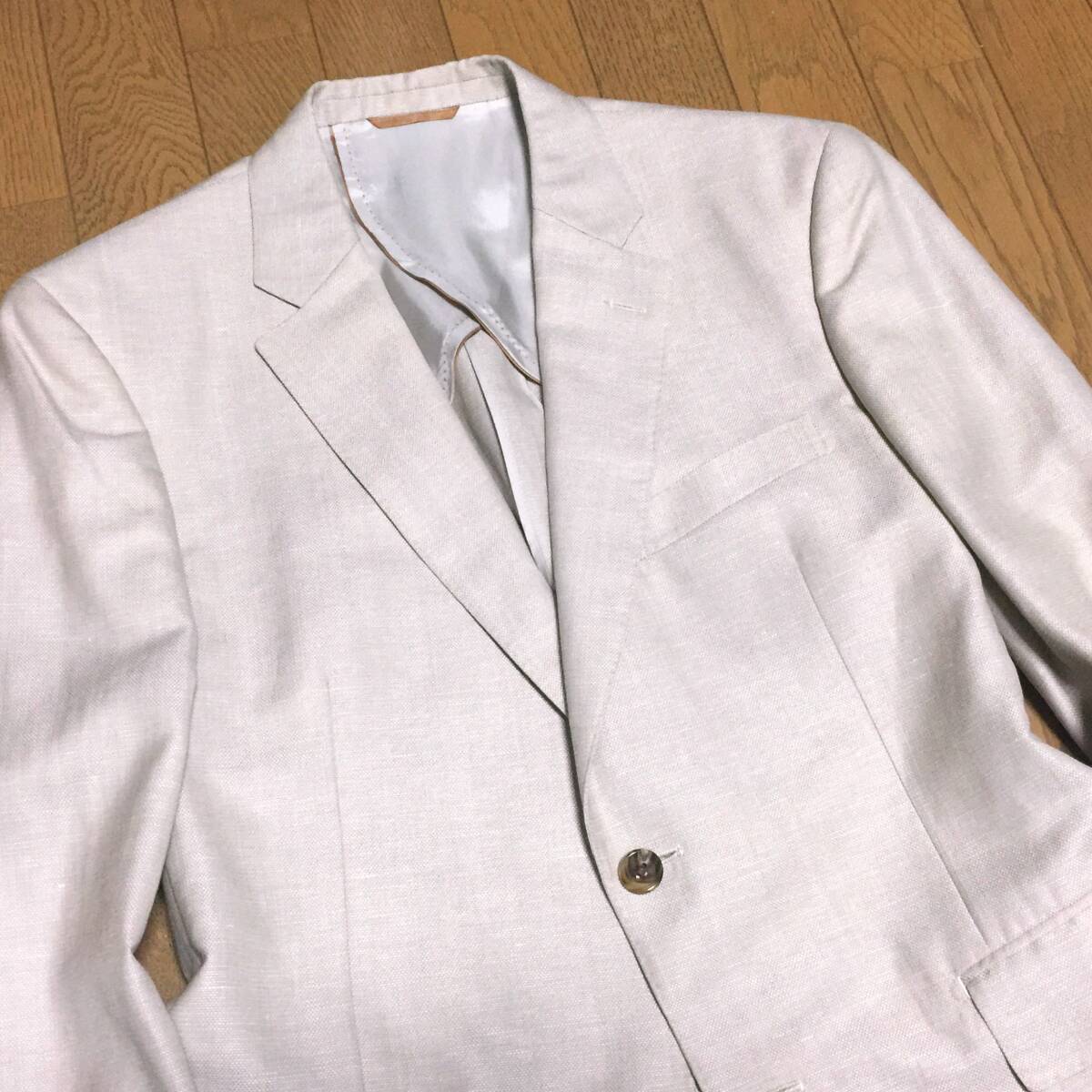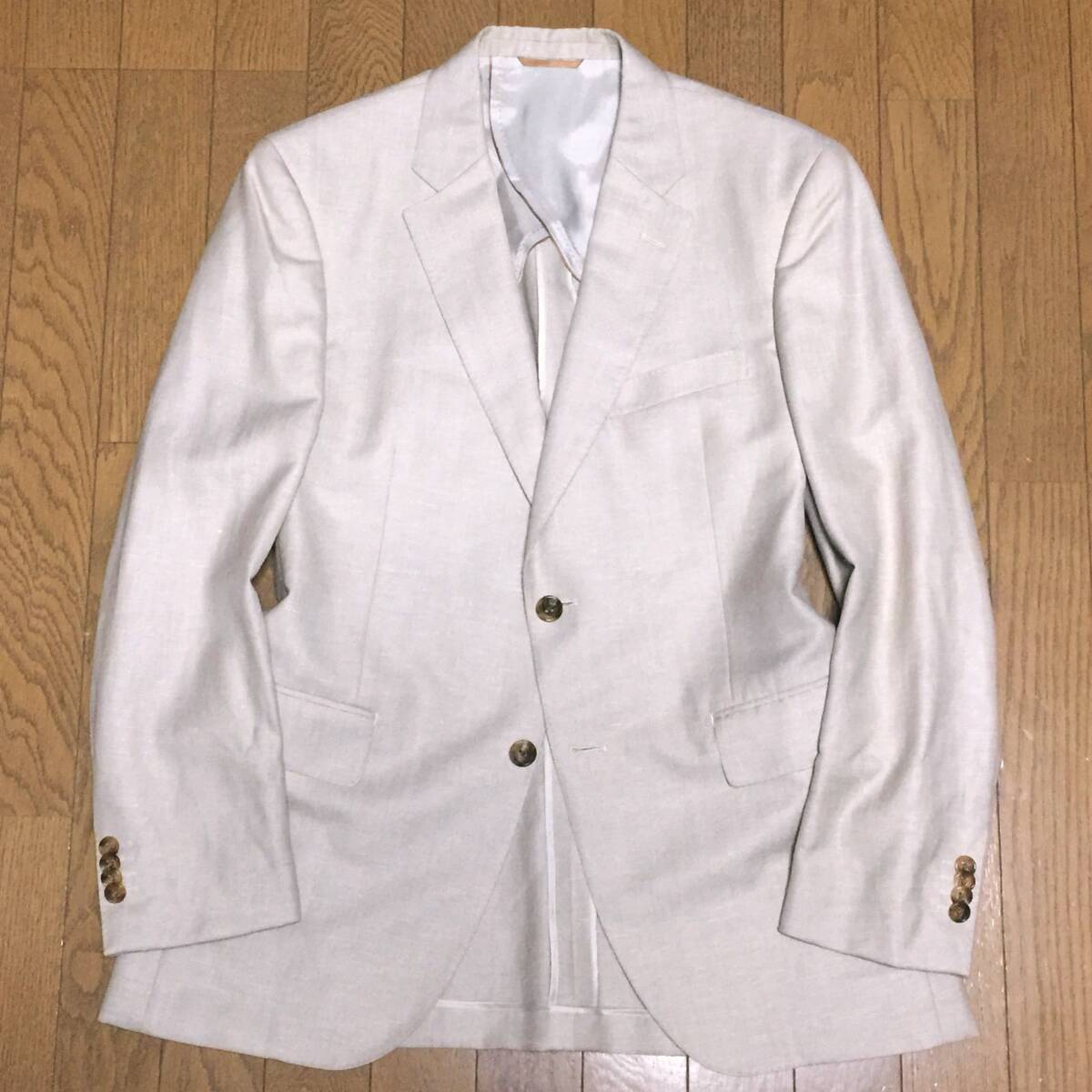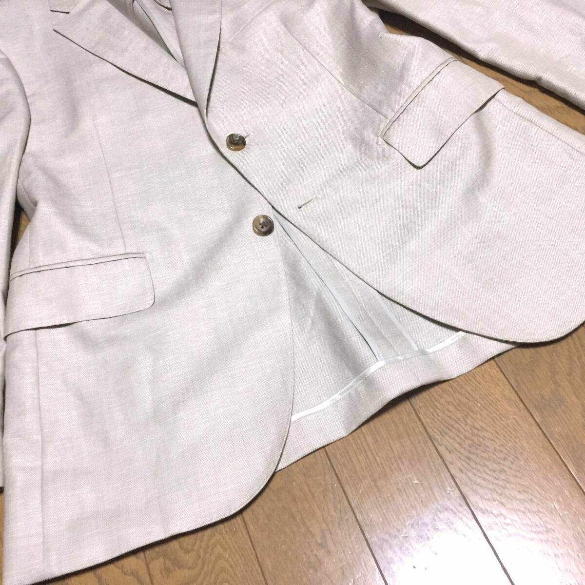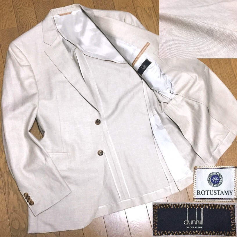 | 【ブランド】 ROTUSTAMY ロータスタミー× dunhill ダンヒル 【デザイン・モデル】 オーダーメイド 麻 リネン混 ウール 2B テーラードジャケット 【販売・生産】 日本製 【詳細・コメント】 ロータスタミー オーダーメイド テーラードジャケットになります。生地にはdunhill ダンヒル社の最高級リネン&ウール生地を使用、麻特有の上品な艶感・風合い・清涼感ある素材で高級感あふれる逸品。細身の美しいシルエットで仕立て、品格ある大人のジャケットスタイルを演出していただけます。仕立てはシングル2ボタン、袖口4ボタン、背抜き、サイドベンツです。 正規品です。 【サイズ】 表記: 100AB7(胸囲100 胴囲90 身長180) ※実寸を参考にして下さい。 平置実寸:身幅 55㎝ 着丈77cm 肩幅47㎝ 袖丈63㎝ ※多少の誤差はご了承ください。 【カラー・パターン】 ベージュ系※ご覧になられるモニターや、デジカメの撮影具合によって色味が異なる場合がございますのであらかじめご了承ください。 【品質】 表地:毛75% 麻25% 裏地:(胴裏)キュプラ100% (袖裏)キュプラ100% 【コンディション】 USED 中古品です。使用感なく綺麗です。まだまだ着用していただけます。※写真参考に判断して下さい。ユーズドアイテムにご理解ある方のみご入札お願い致します 。 | |||
