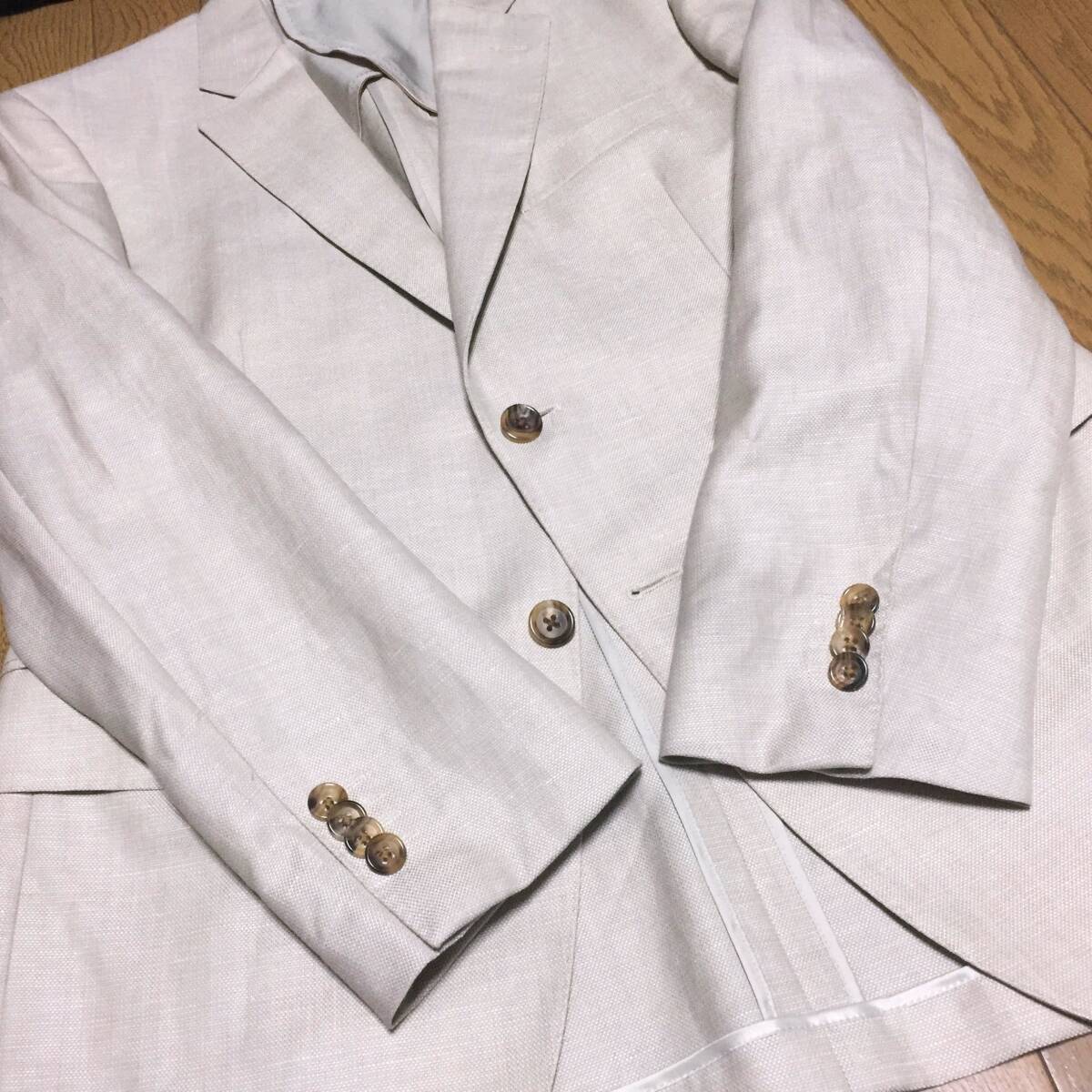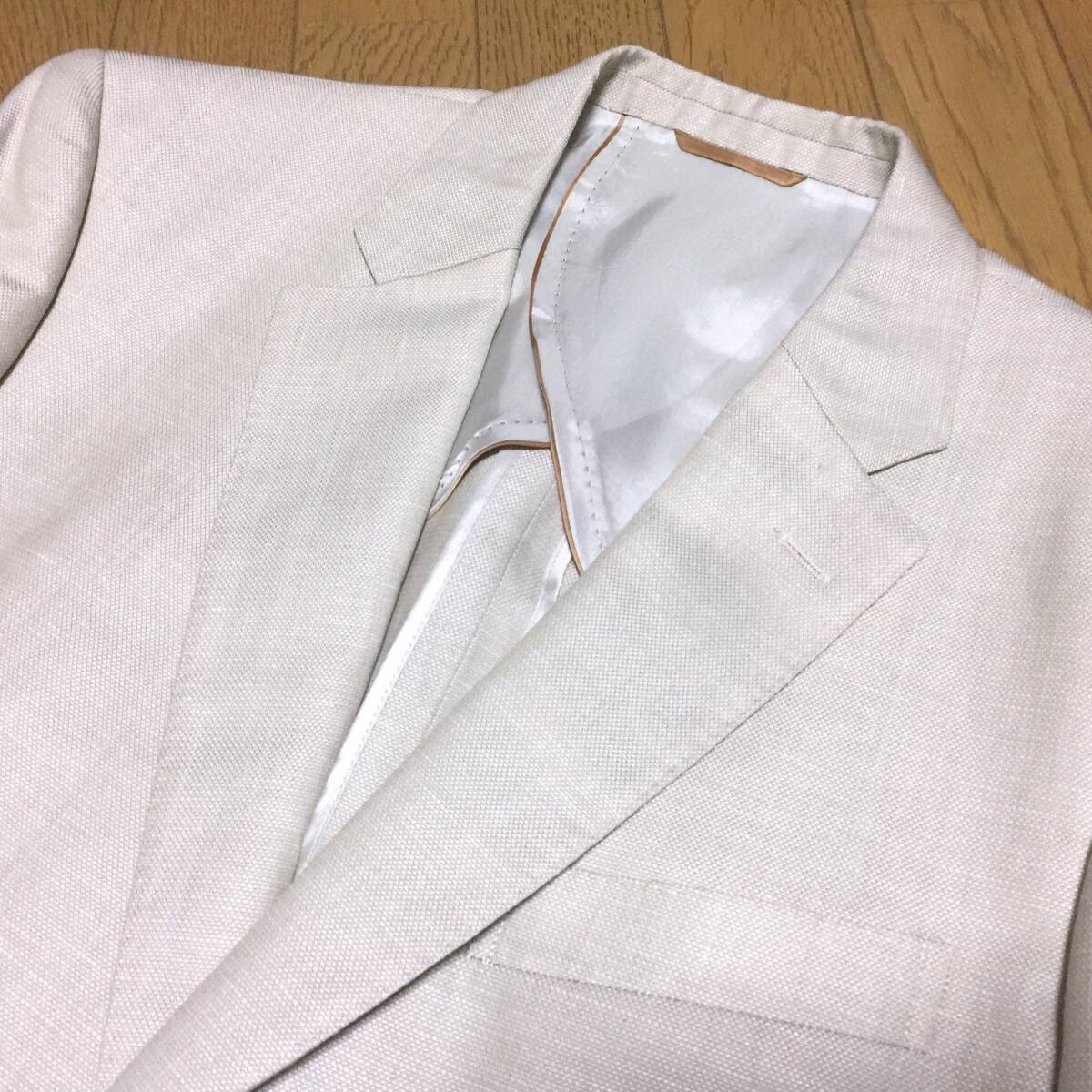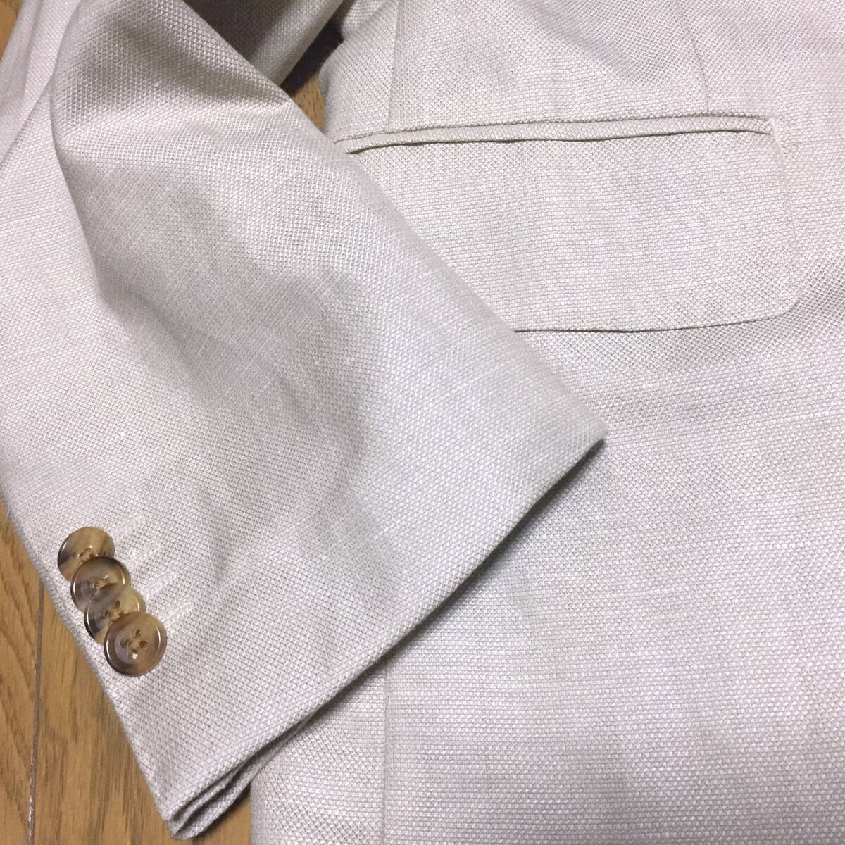 | 【ブランド】 ROTUSTAMY ロータスタミー× dunhill ダンヒル 【デザイン・モデル】 オーダーメイド 麻 リネン混 ウール 2B テーラードジャケット 【販売・生産】 日本製 【詳細・コメント】 ロータスタミー オーダーメイド テーラードジャケットになります。生地にはdunhill ダンヒル社の最高級リネン&ウール生地を使用、麻特有の上品な艶感・風合い・清涼感ある素材で高級感あふれる逸品。細身の美しいシルエットで仕立て、品格ある大人のジャケットスタイルを演出していただけます。仕立てはシングル2ボタン、袖口4ボタン、背抜き、サイドベンツです。 正規品です。 【サイズ】 表記: 100AB7(胸囲100 胴囲90 身長180) ※実寸を参考にして下さい。 平置実寸:身幅 55㎝ 着丈77cm 肩幅47㎝ 袖丈63㎝ ※多少の誤差はご了承ください。 【カラー・パターン】 ベージュ系※ご覧になられるモニターや、デジカメの撮影具合によって色味が異なる場合がございますのであらかじめご了承ください。 【品質】 表地:毛75% 麻25% 裏地:(胴裏)キュプラ100% (袖裏)キュプラ100% 【コンディション】 USED 中古品です。使用感なく綺麗です。まだまだ着用していただけます。※写真参考に判断して下さい。ユーズドアイテムにご理解ある方のみご入札お願い致します 。 | |||