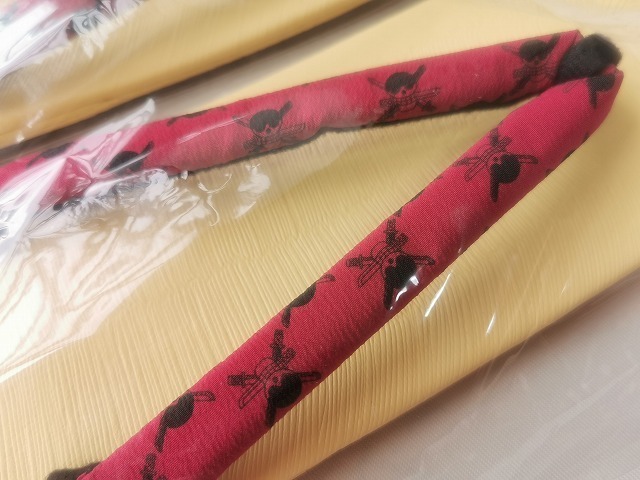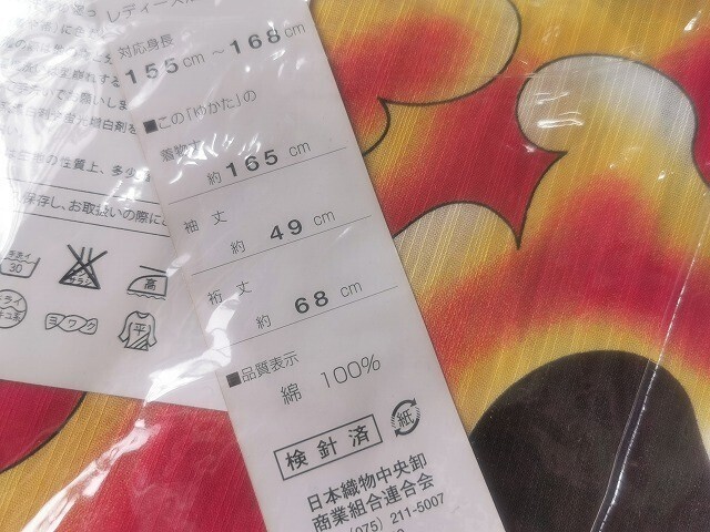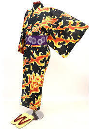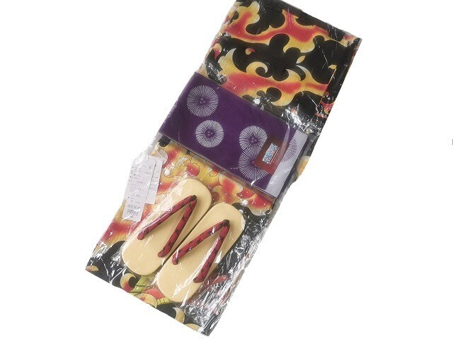 ワンピースの浴衣、帯、雪駄が付属した3点セットです。