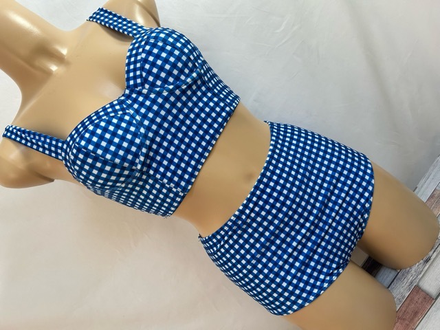 k08030◎AIOSNUO 水着 ビキニ ギンガムチェック ブルー M