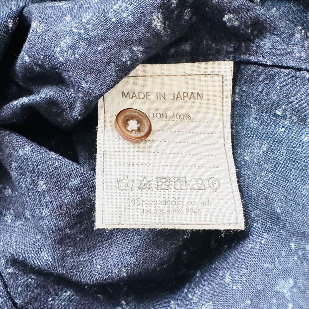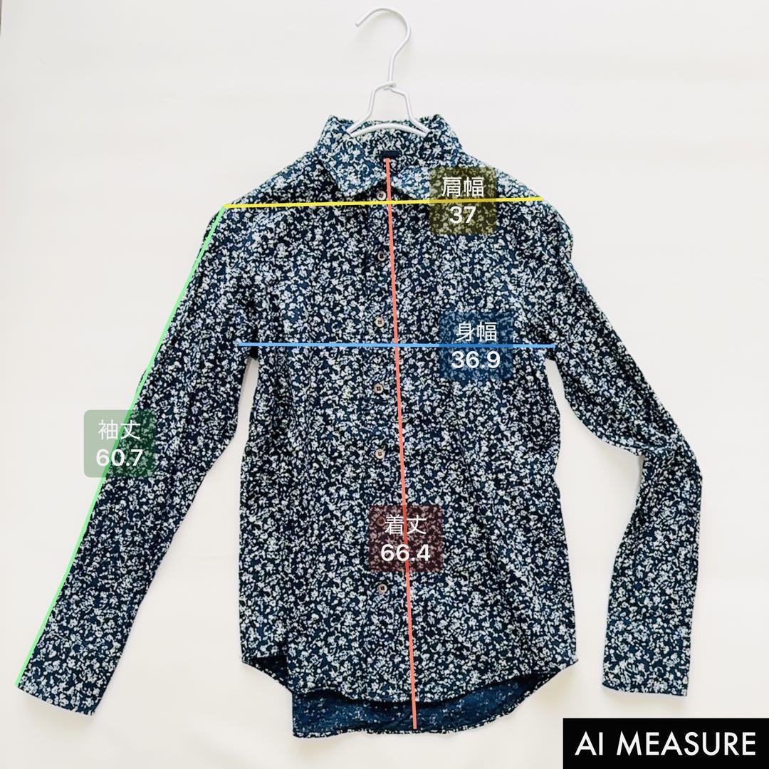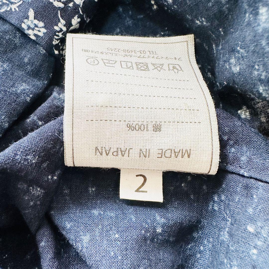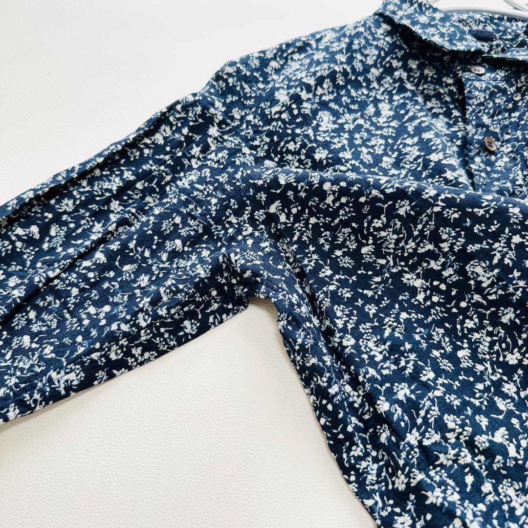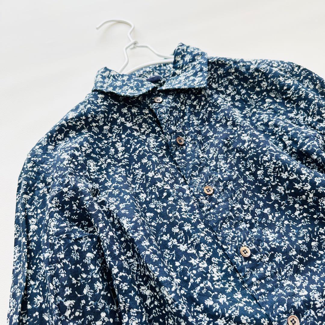 美品 45R フラワープリントシャツ 長袖 コットン カジュアルシャツ 紺×白 花柄 2