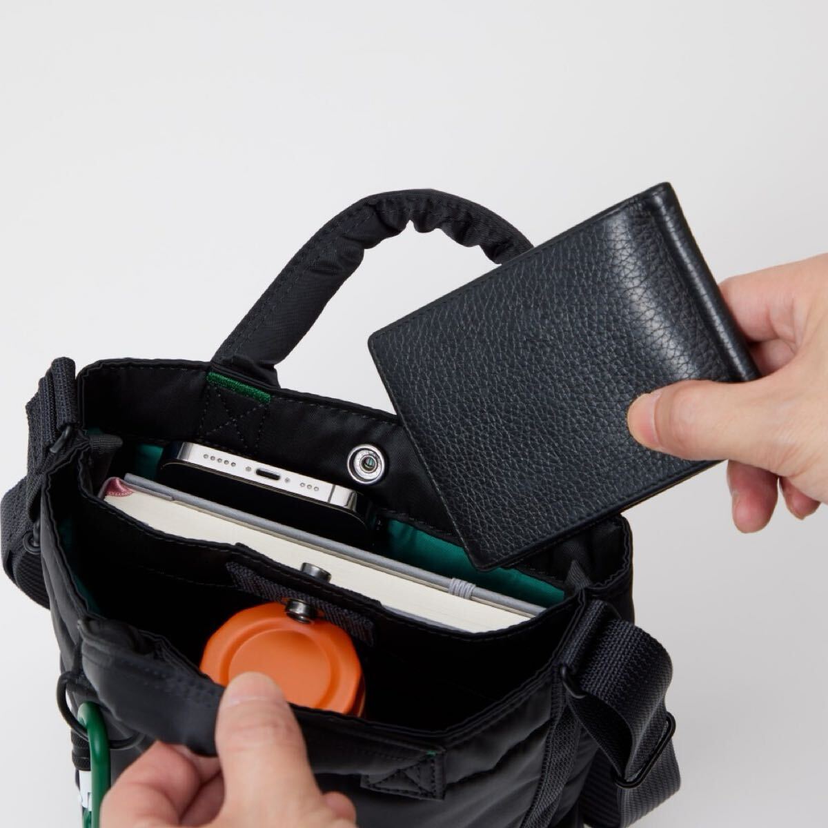 財布やスマートフォンなどの小物を収納するのにぴったりのスペースになっています。