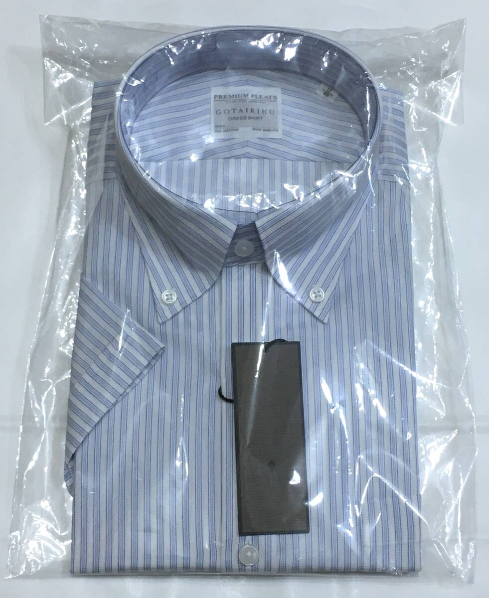 gotairiku 五大陸 PREMIUMPLEATS 半袖 ボタンダウンシャツ 綿100% 43 LL ストライプ オンワード 定価14.300円