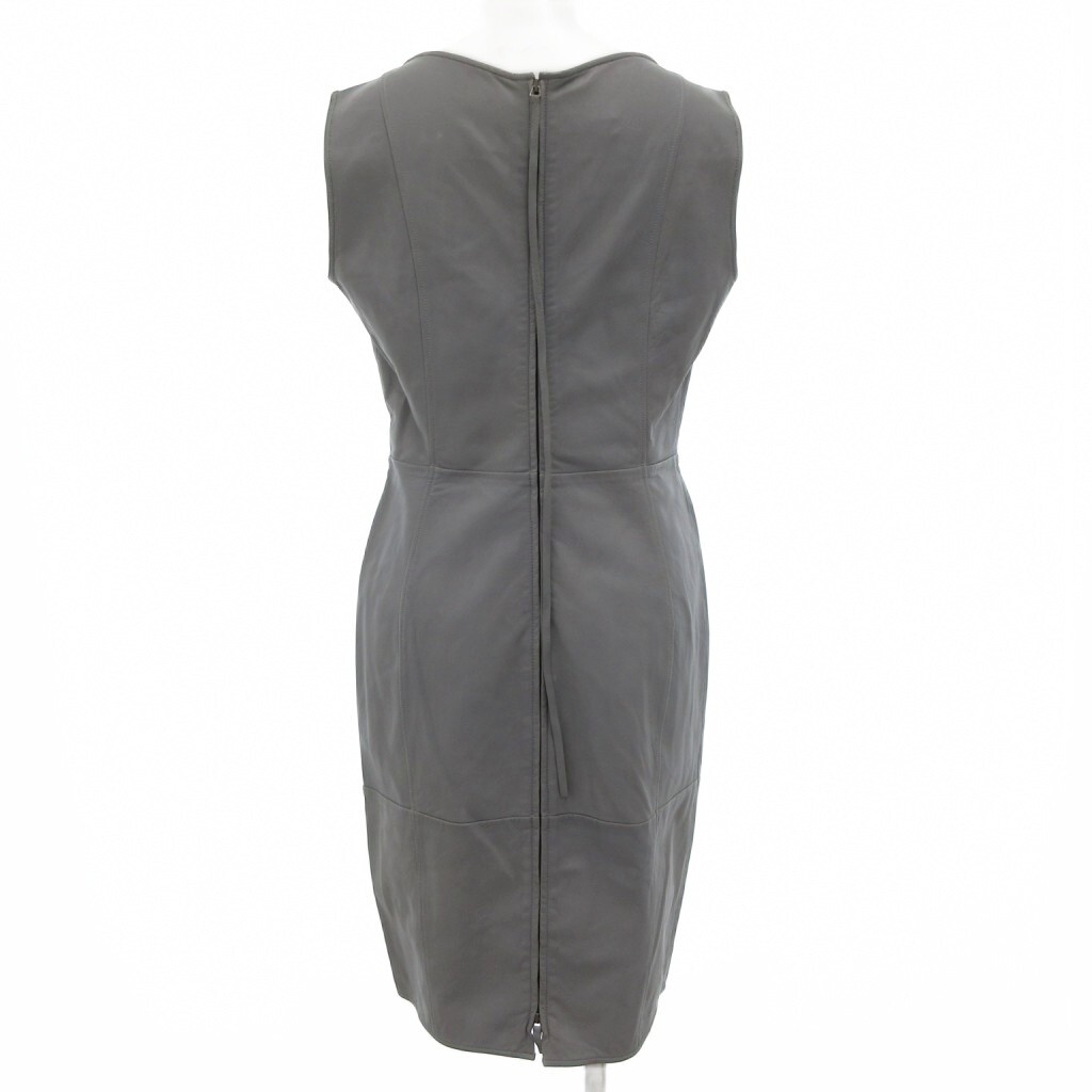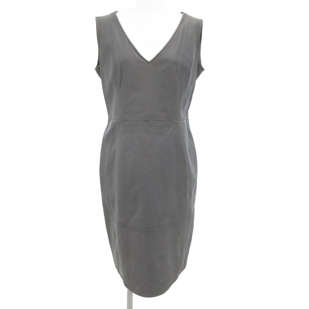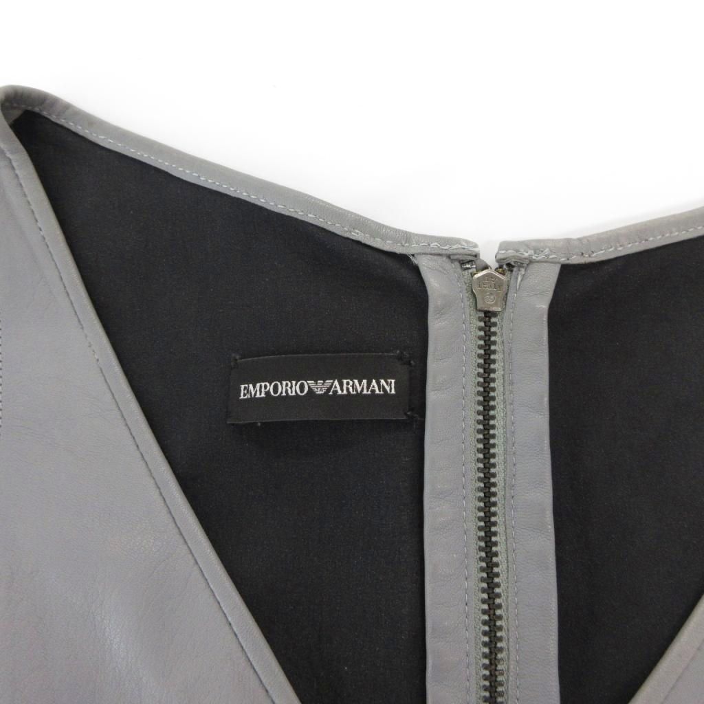 エンポリオアルマーニ EMPORIO ARMANI ワンピース Vネック ノースリーブ ラムレザー ひざ丈 44 グレー ■GY19 レディース