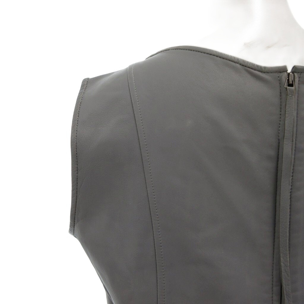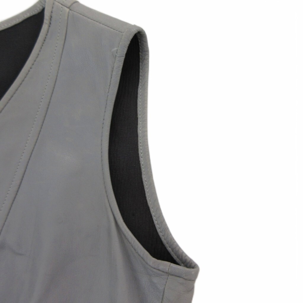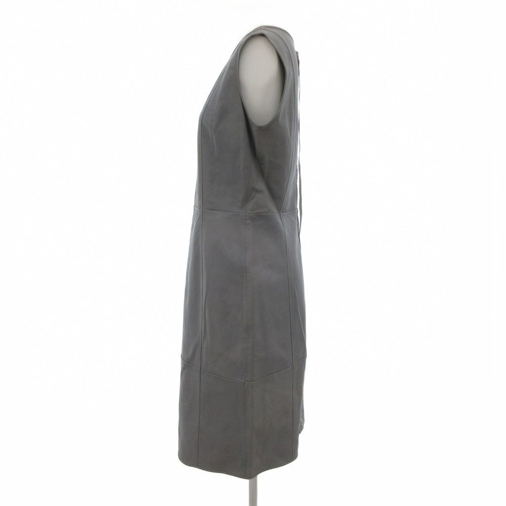 エンポリオアルマーニ EMPORIO ARMANI ワンピース Vネック ノースリーブ ラムレザー ひざ丈 44 グレー ■GY19 レディース