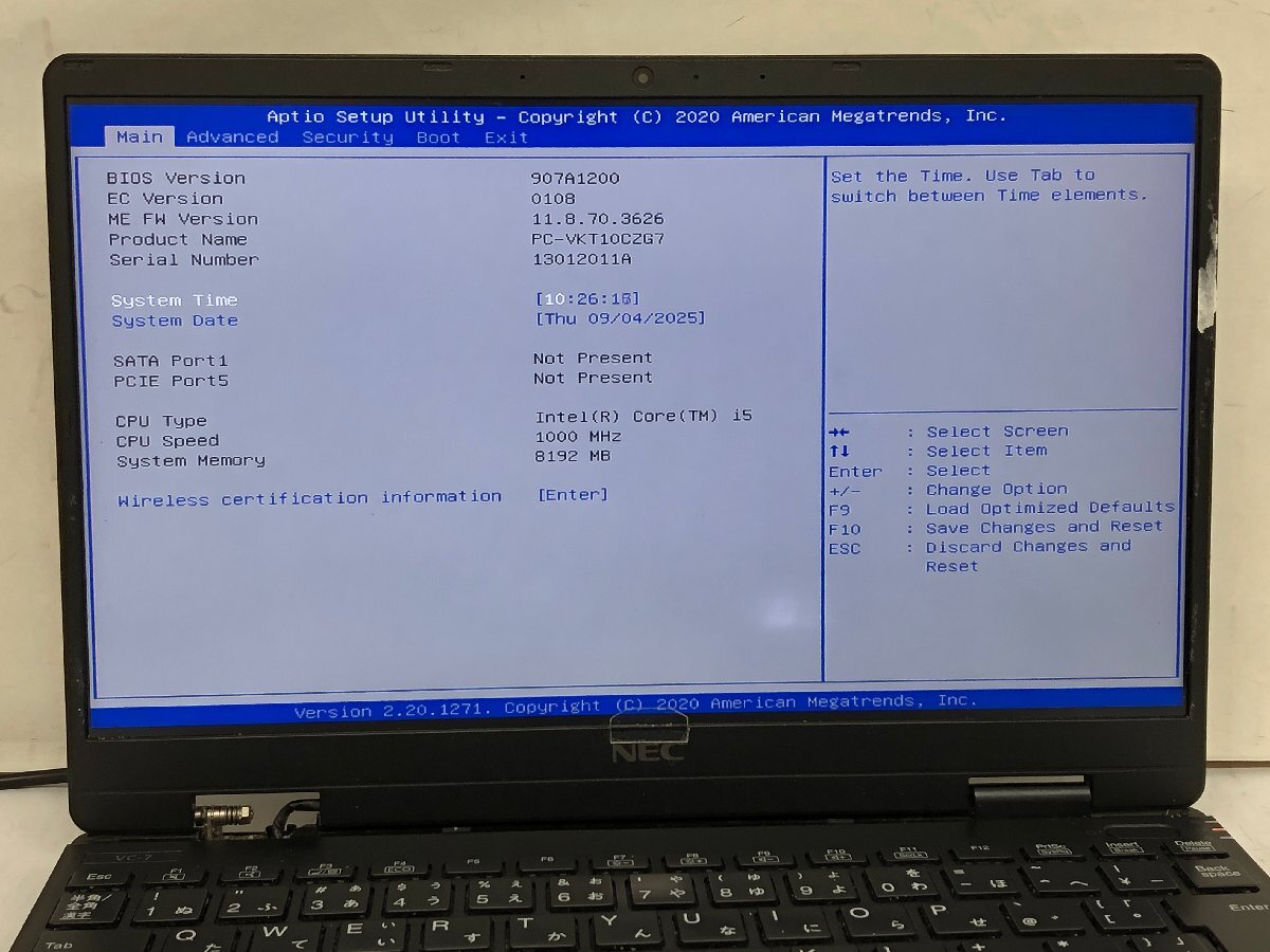 ジャンク/ NEC PC-VKT10CZG7 Intel Core i5-10210Y メモリ8.19GB ストレージ無し 【K20704】