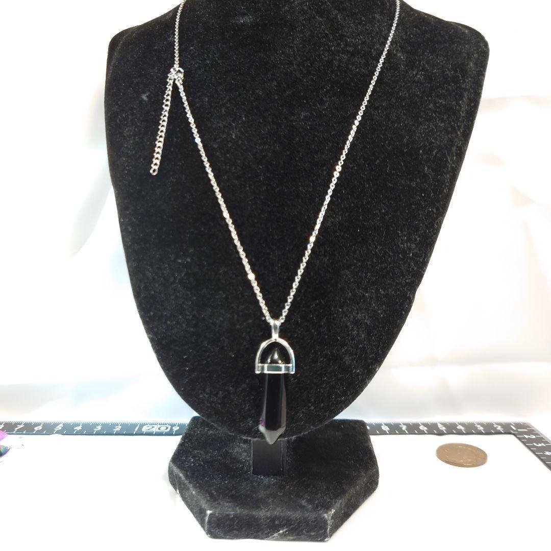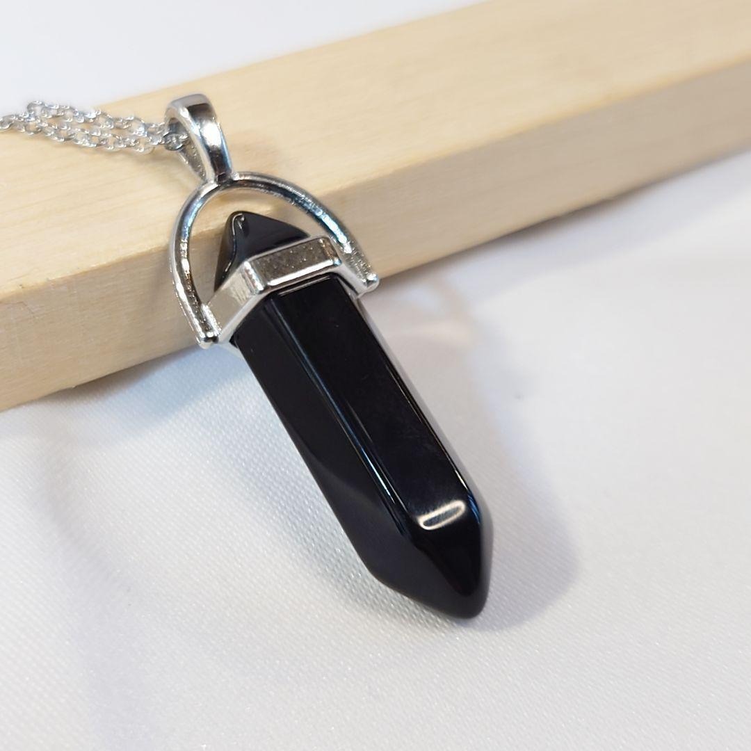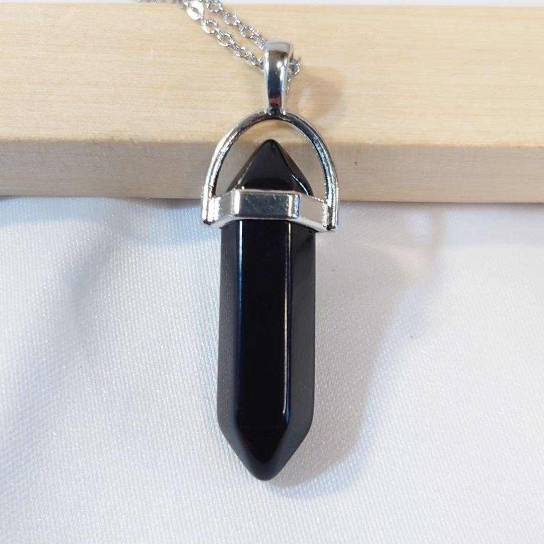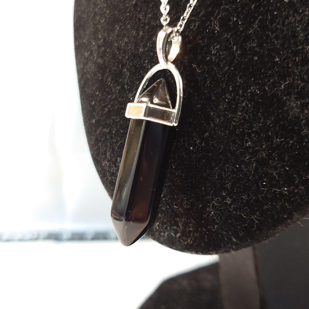 漆黒のブラックオニキスのダブルポイントネックレスです。