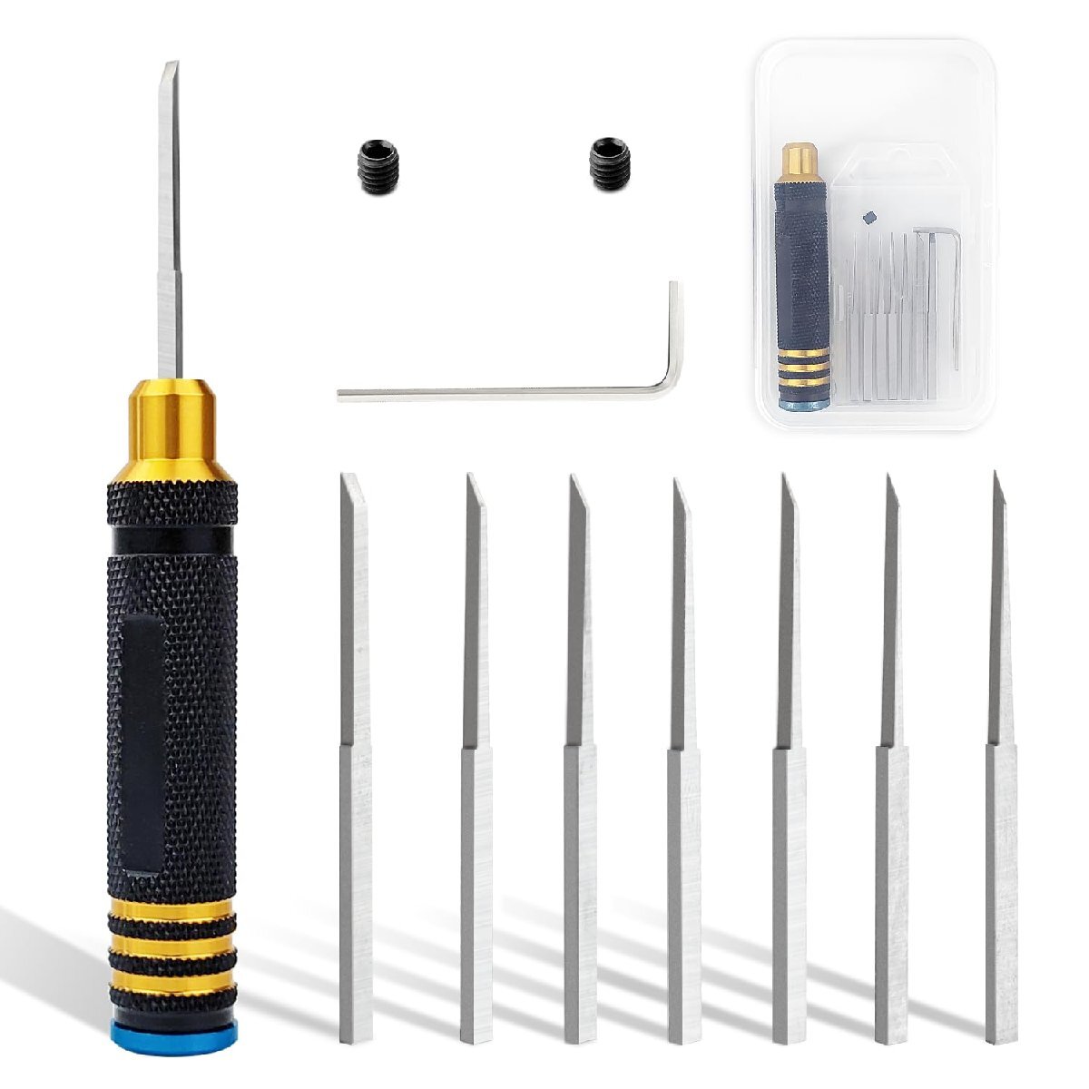 ブランド:Vlookeeカラー:ブラック【スジボリタガネセット内容】:ホルダー×1、タガネ×7(刃幅:0.1mm、0.2mm、0.4mm、0.6mm、0.8mm、1.0mm、2.0mm)、イモネジ×2、六角レンチ×1、タガネ専用ケース×1。タガネプラモデルは、プラモデルやフィギュアなど模型工具に欠かせないアイテムです。