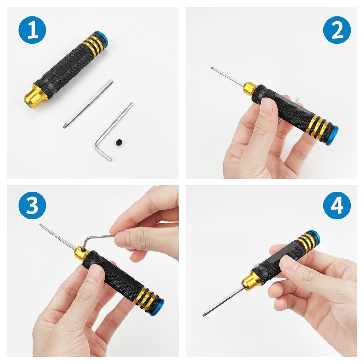 【簡単操作で交換可能】筋彫りセットで適切な刃を選択してください、刃をグリップに差し込んだ後、グリップの穴に向かって付属のネジを入れ、六角レンチで固定するだけでセット完了です。手軽に交換できるのでより繊細でこだわった製作が叶います。(※スジボリ彫刻刀は防錆の為に少し油が塗布されていますが、多少変色がある場合がございますので予めご了承ください。)