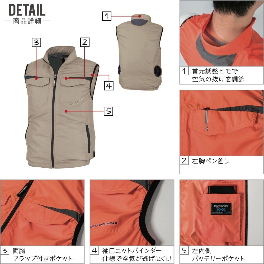 | 空調服説明 & 状態 & 素材 & サイズ & カラー 【画像参照】 | 届いてすぐにお使いいただけるおすすめセット商品! ■空調服 ≪説明≫ 何より動きやすいのが特徴。 袖口はパイピング仕様にしているので余計な風を外に逃さず衣服内を回り、首元から排出されます。 袖口がシャーリングになっているので肩周りにも風が通り抜けより快適です。 ≪状態≫ 新品・正規品 ≪素材≫ ポリエステル100% 高密度ポリエステルタフタ ≪特徴≫ ・調整ヒモ ・両胸フラップ付ポケット ・左胸ペン差し ・袖口ニットバインダー仕様 ・左内側バッテリーポケット ・身頃の膨らみを抑えたシャープなシルエット ・樹脂ファスナー ≪サイズ≫ タイトル名【 画像参照 】 ≪カラー≫ タイトル名【 画像参照 】 | セット 内容 | ■パワーファン対応バッテリーセット ≪内容≫ ・パワーファン対応バッテリー×1 ・バッテリーケース×1 ・急速AC充電アダプター×1 充電時間:約8時間 出力:7.2V、6V、5V、3.3V(4段階) 定格容量:6500mAh 重量:274g 連続使用時間 7.2V設定時:約4.5時間 6V設定時:約6時間 5V設定時:約9時間 3.3V設定時:約23時間以上 ■パワーファンセット ≪カラー≫ タイトル名【 画像参照 】 ≪内容≫ ・パワーファン×2 ・ケーブル×1 風量 7.2V設定時:30.0リットル/秒 6V設定時:25.9リットル/秒 5V設定時:22.4リットル/秒 3.3V設定時:16.0リットル/秒 ■:本商品の【 サイズ・カラー 一覧(服単品) 】 ■:本商品の【 フルセット(服+バッテリー+ファン) 】 ■:本商品の【 ファンセット(服+ファン) 】 ■:本商品の【 大風量フルセット(服+大風量対応バッテリー+パワーファン) 】 ■:本商品の【 備品 一覧 】 □:綿100% 空調服 一覧 □:ポリエステル100% 空調服 一覧 □:フルハーネス 空調服 一覧 |