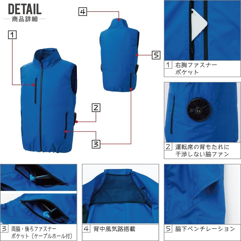 仕様:調整紐(首元)/左内側パッテリー専用ポケット/右胸ポケット/右脇ペン差し/袖口ニットバインダー仕様