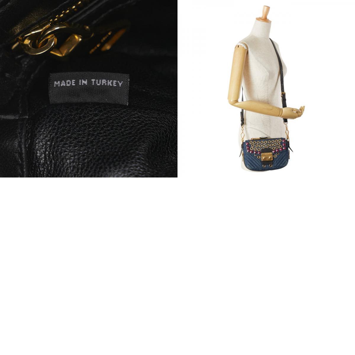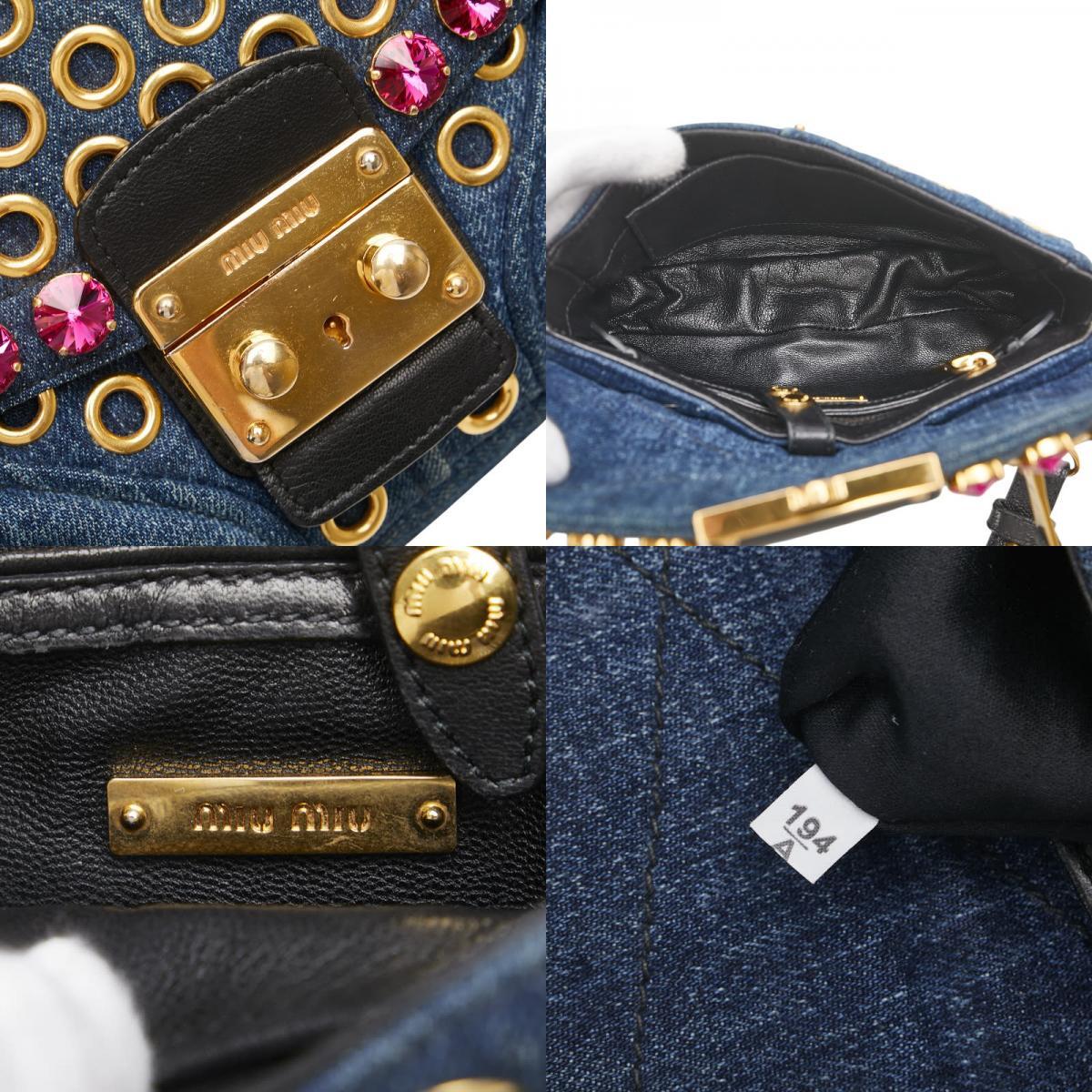 ミュウミュウ ビジュー 斜め掛け ショルダーバッグ インディゴブルー マルチカラー デニム レザー レディース MIUMIU 【中古】