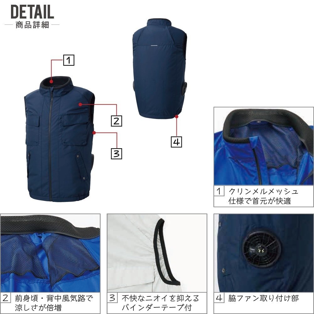 空調風神服 【12V フルセット フラットファン】 サンエス KF92412 サイドファン ベスト 消臭 色:ネイビー サイズ:4L