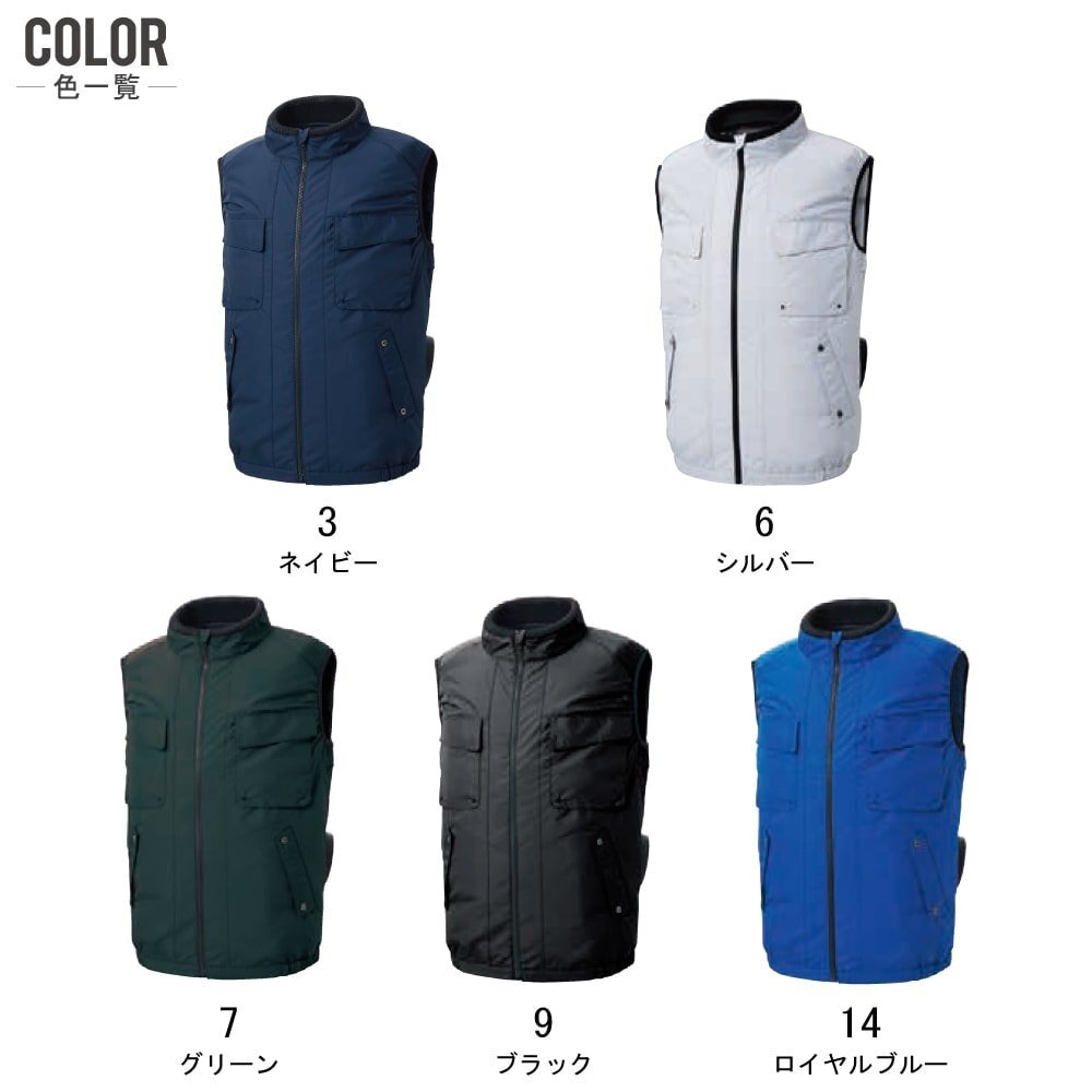 仕様:調整紐(首元)/左内側パッテリー専用ポケット/右胸ポケット/右脇ペン差し/袖口ニットバインダー仕様